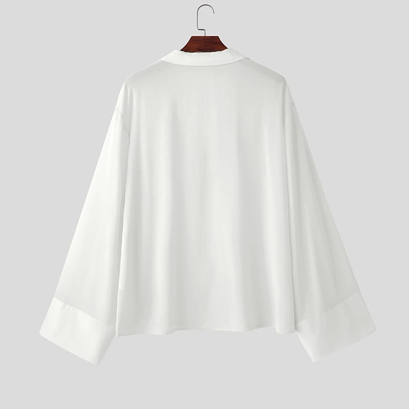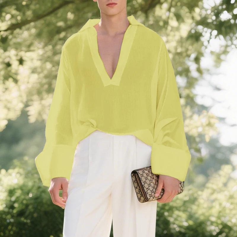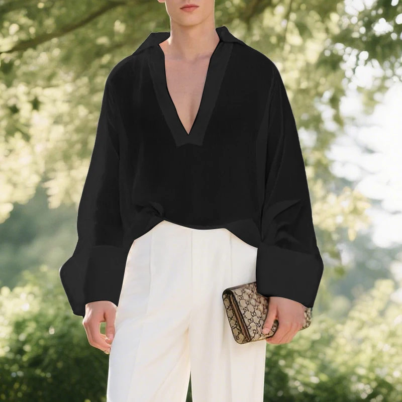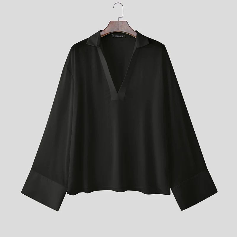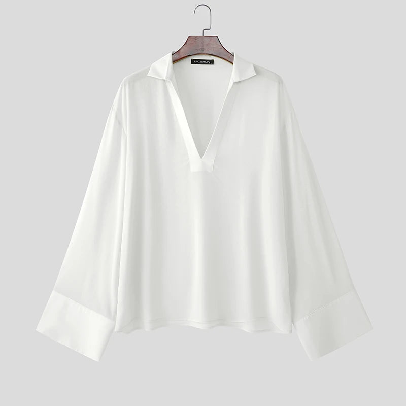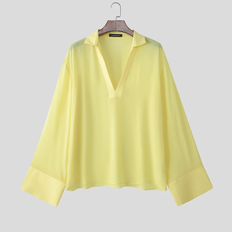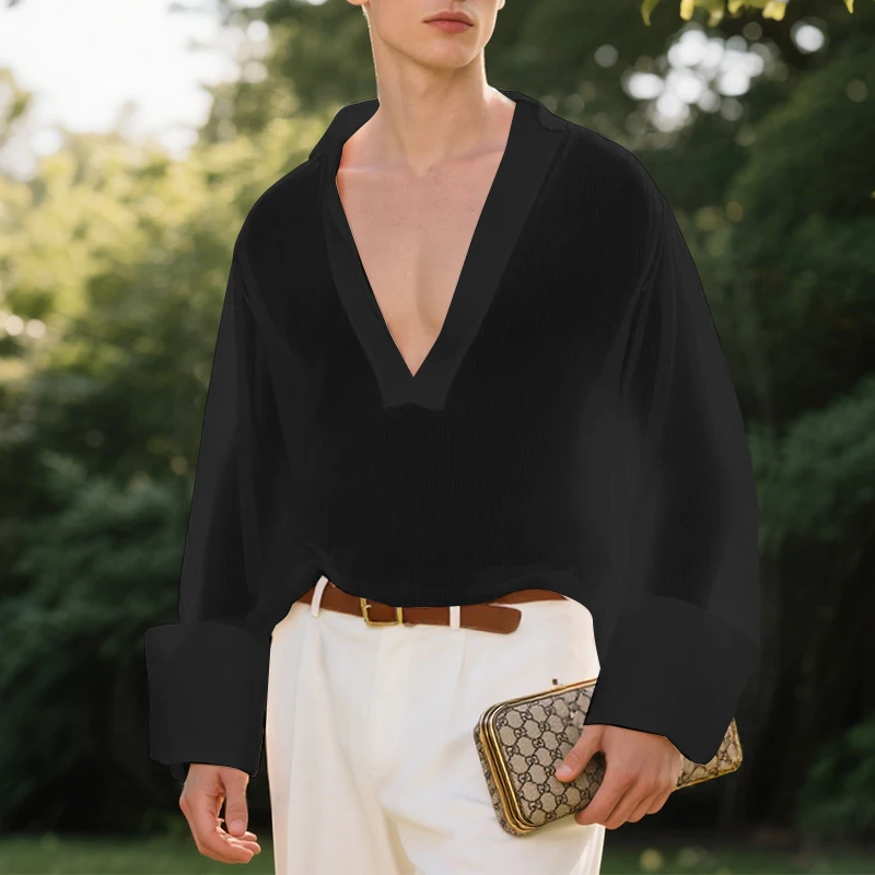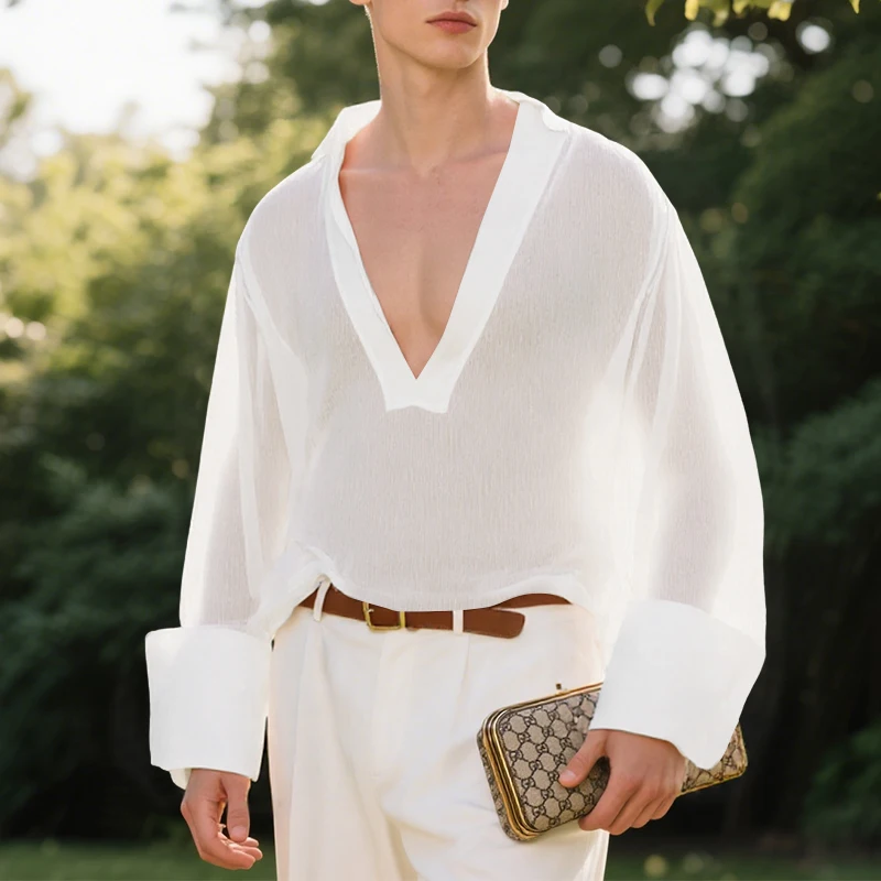 AIDASE - Men T Shirt Solid Color V Neck Long Sleeve Loose Casual Male Tee Tops 2025 Streetwear Translucent Fashion Men Clothing