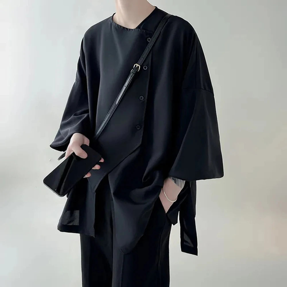 AIDASE - Men's New Irregular Oblique Button Short-Sleeved Shirt American Retro Fashion Trend Simple Loose Casual Breathable Men's Tops
