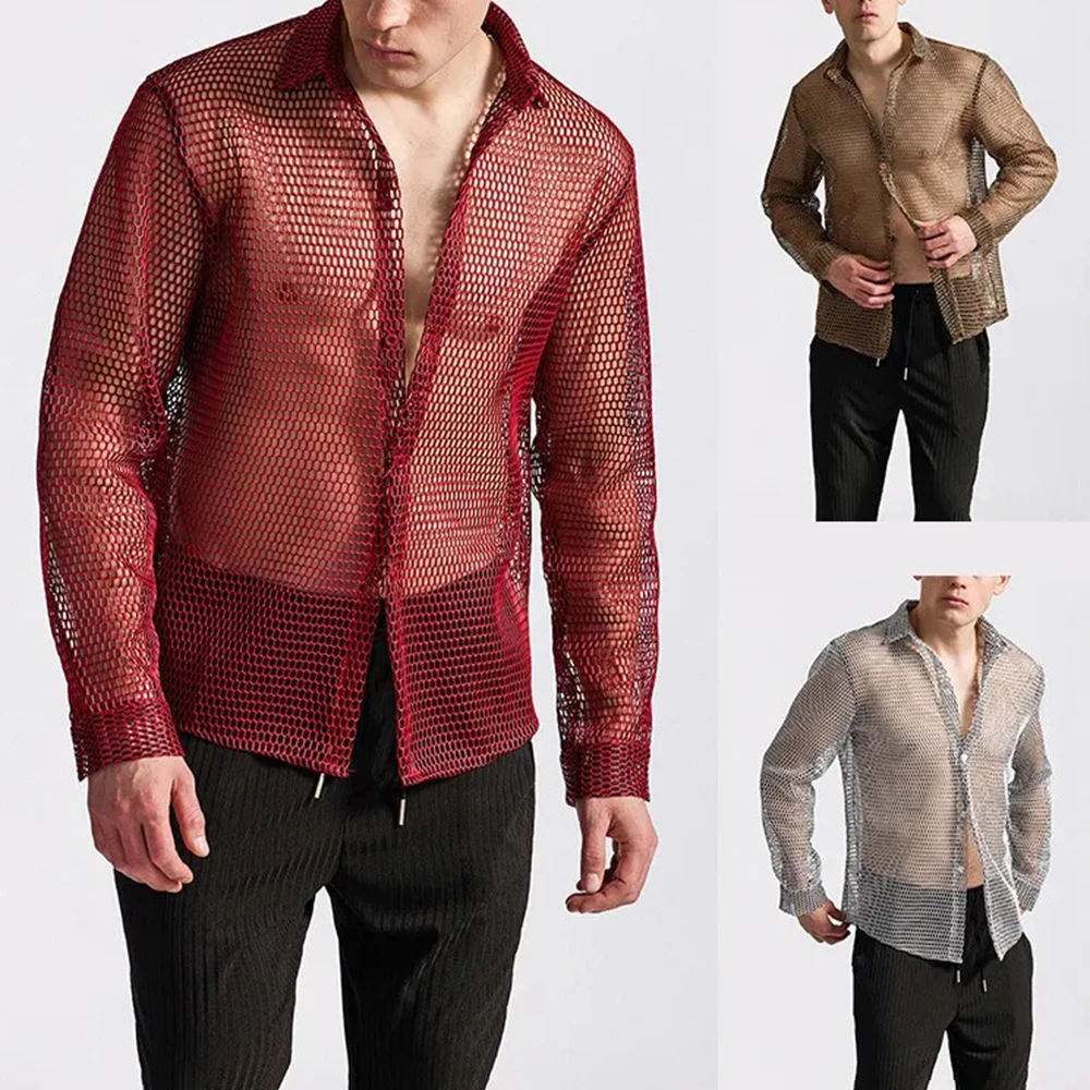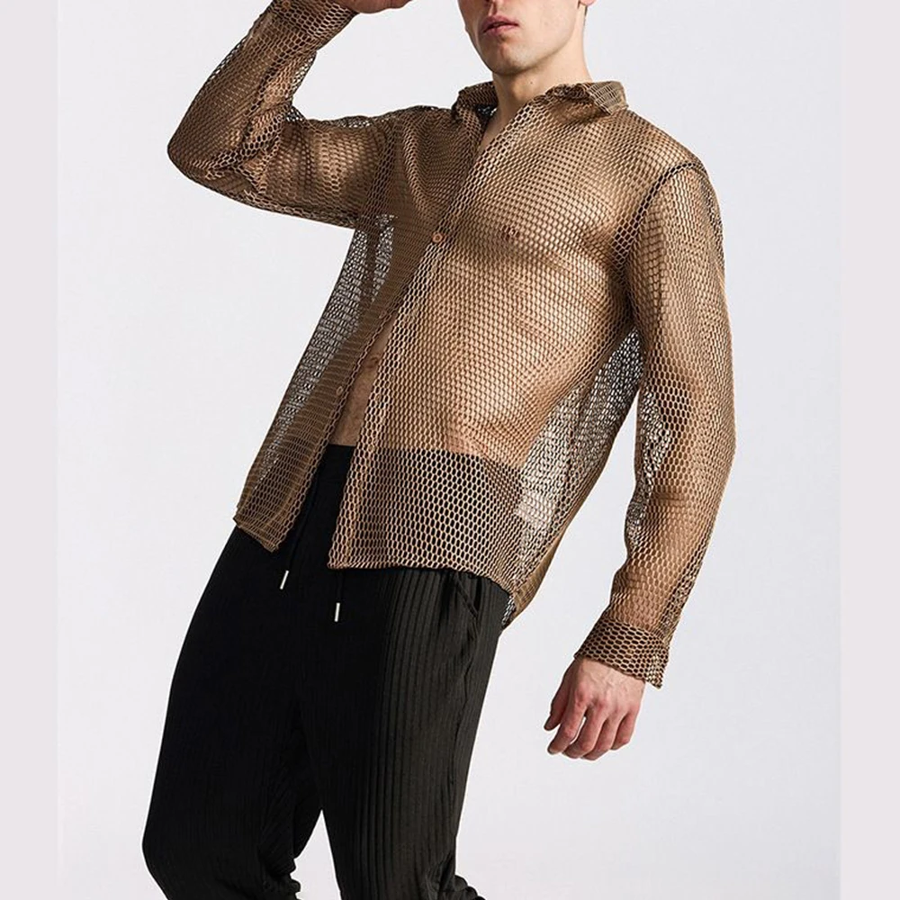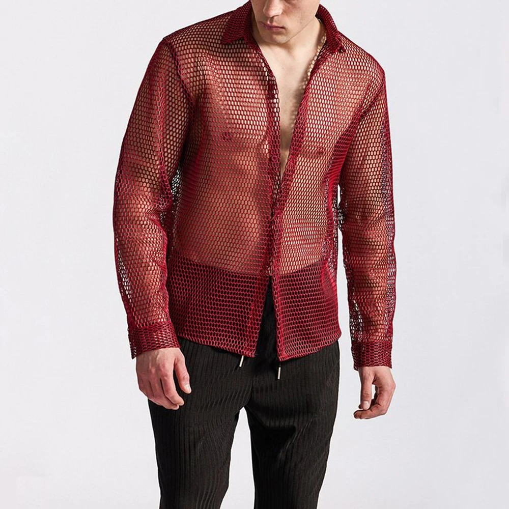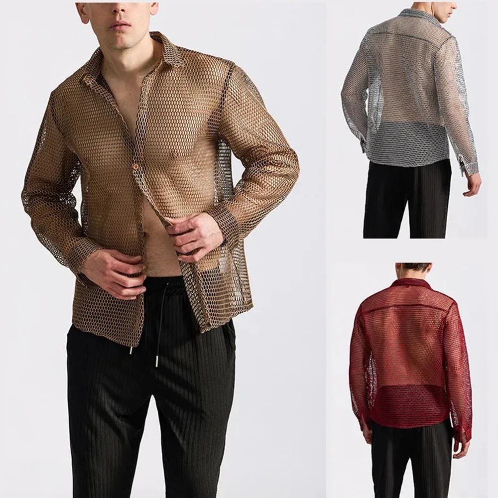 AIDASE - Mens Shirt Hollow Ballroom Nightclub Sexy Shirt Streetwear Fashion Youth Outdoor Niche Long-Sleeved Top Men'S Clothing 2025 New