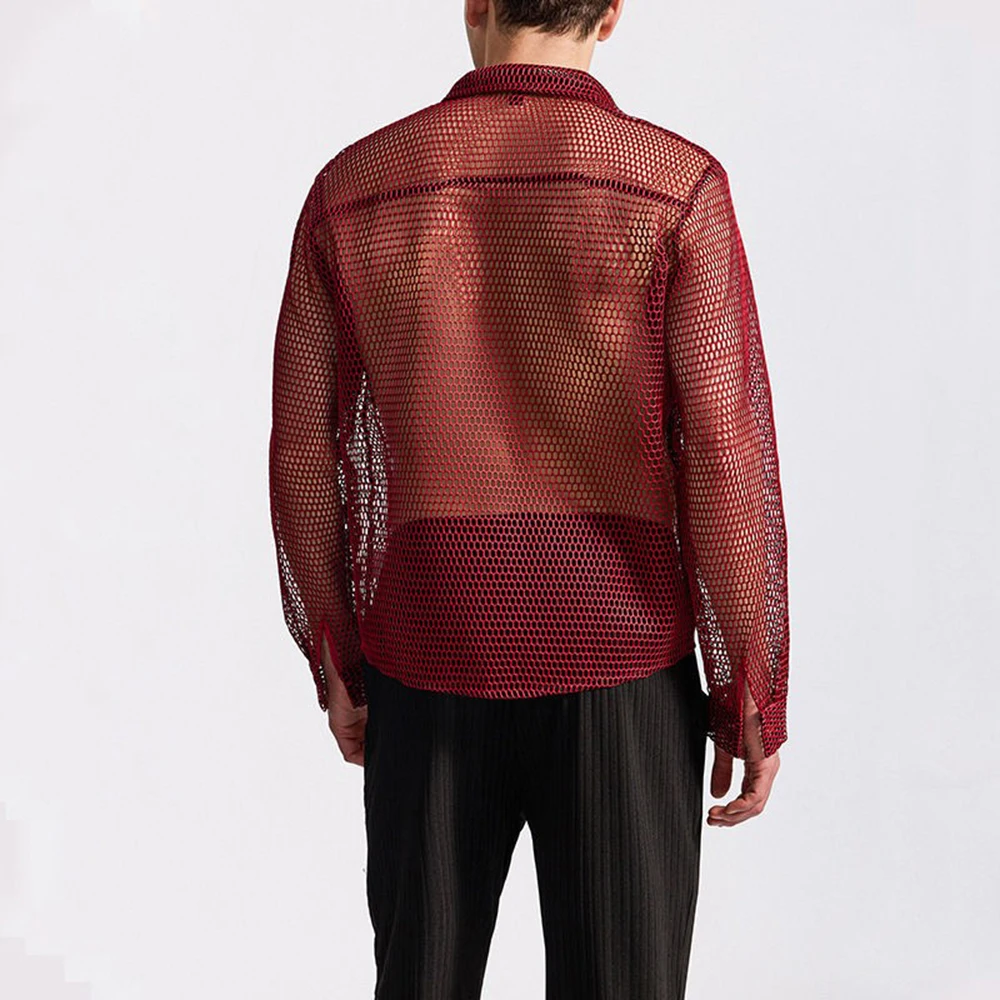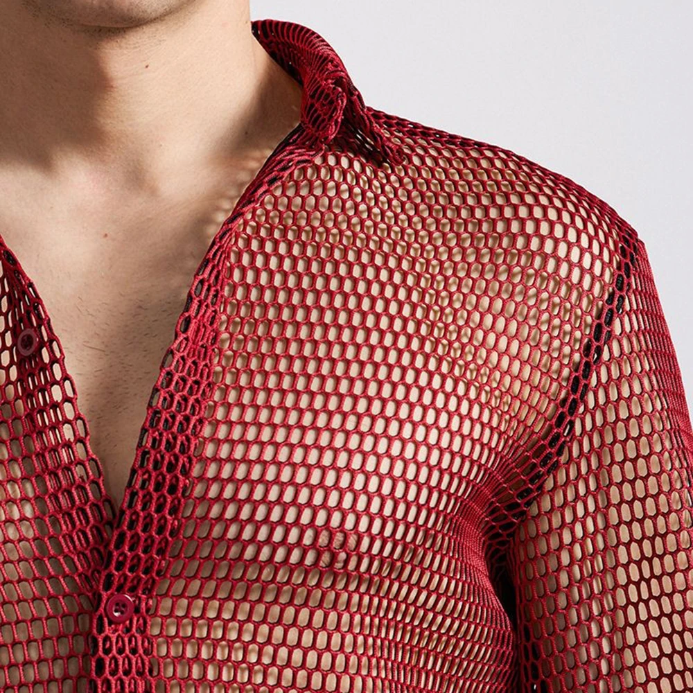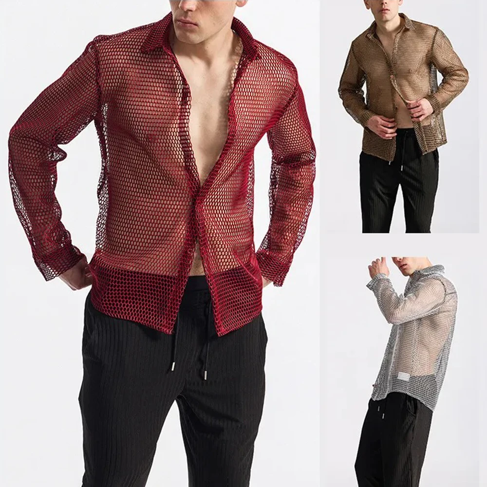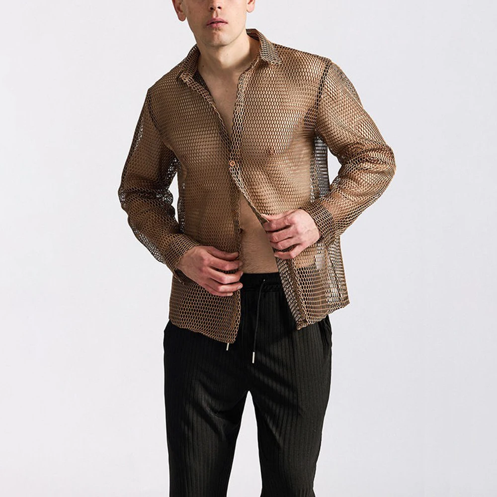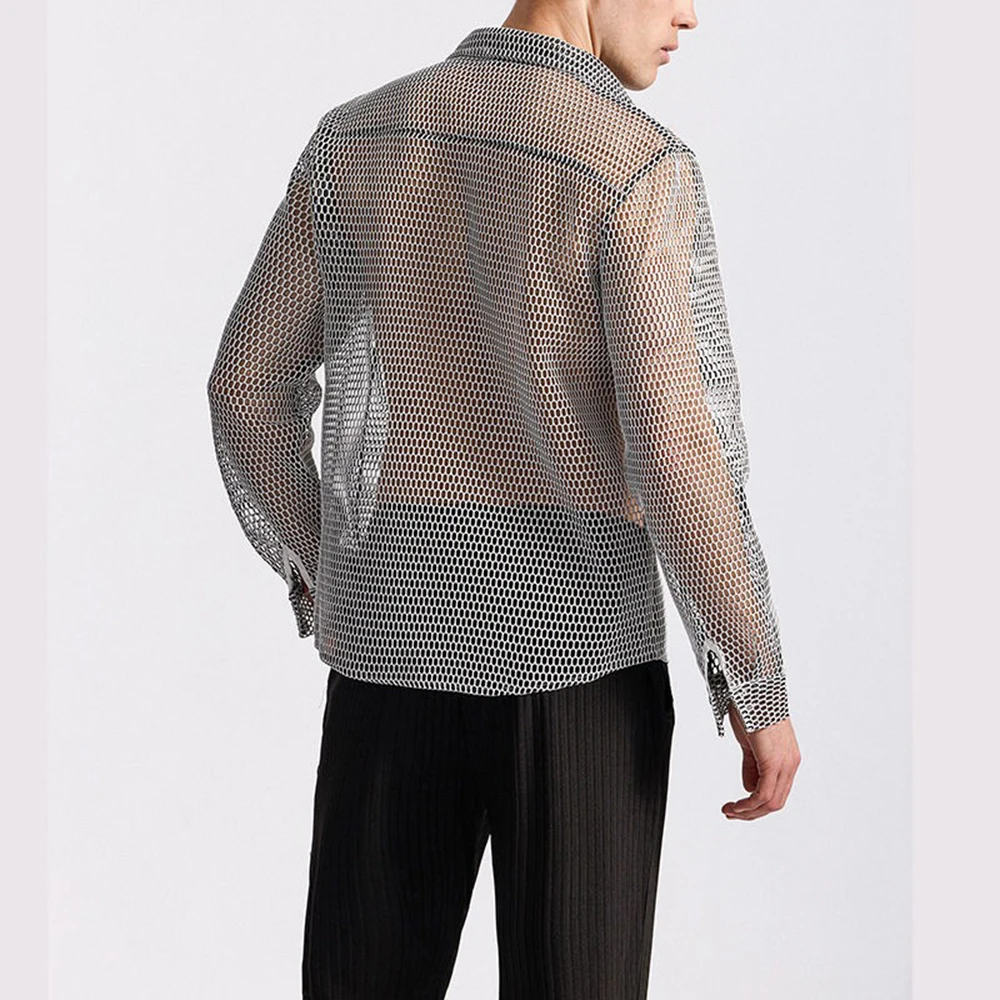 AIDASE - Mens Shirt Hollow Ballroom Nightclub Sexy Shirt Streetwear Fashion Youth Outdoor Niche Long-Sleeved Top Men'S Clothing 2025 New