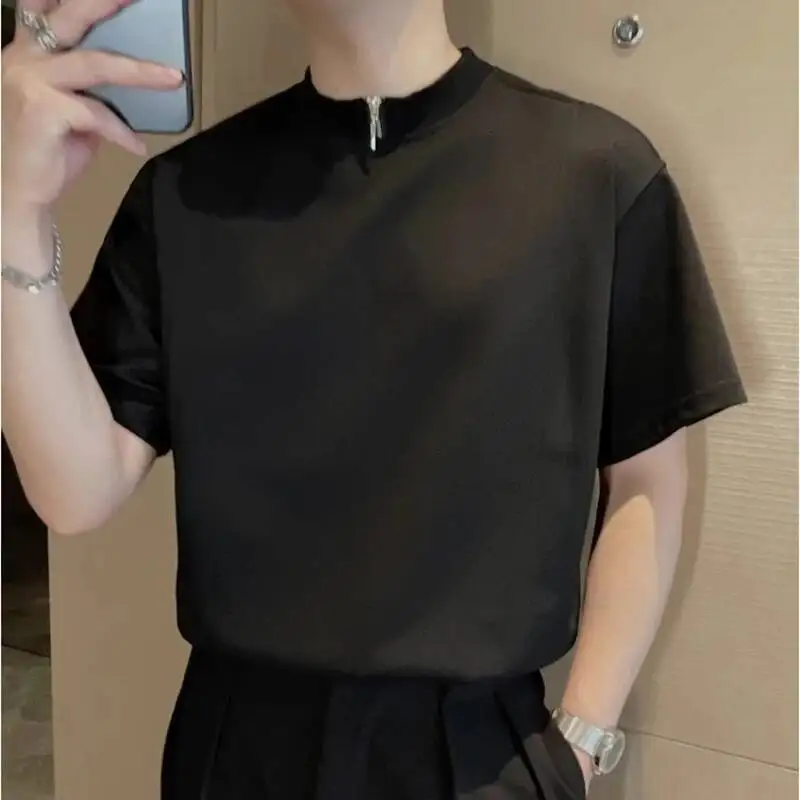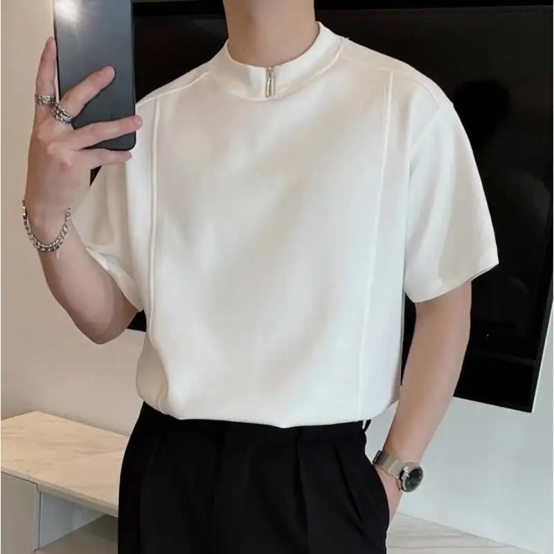 AIDASE - Men's Short Sleeve T-shirt Summer New Half Zipper Round Neck Casual Solid Color Men Tees Fashion Handsome Male Tops 21E6997