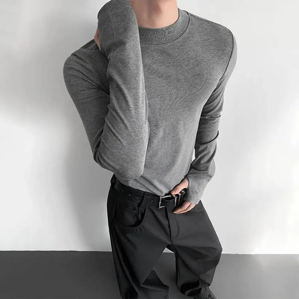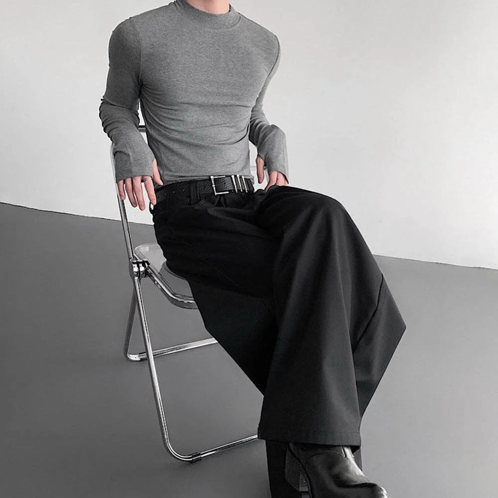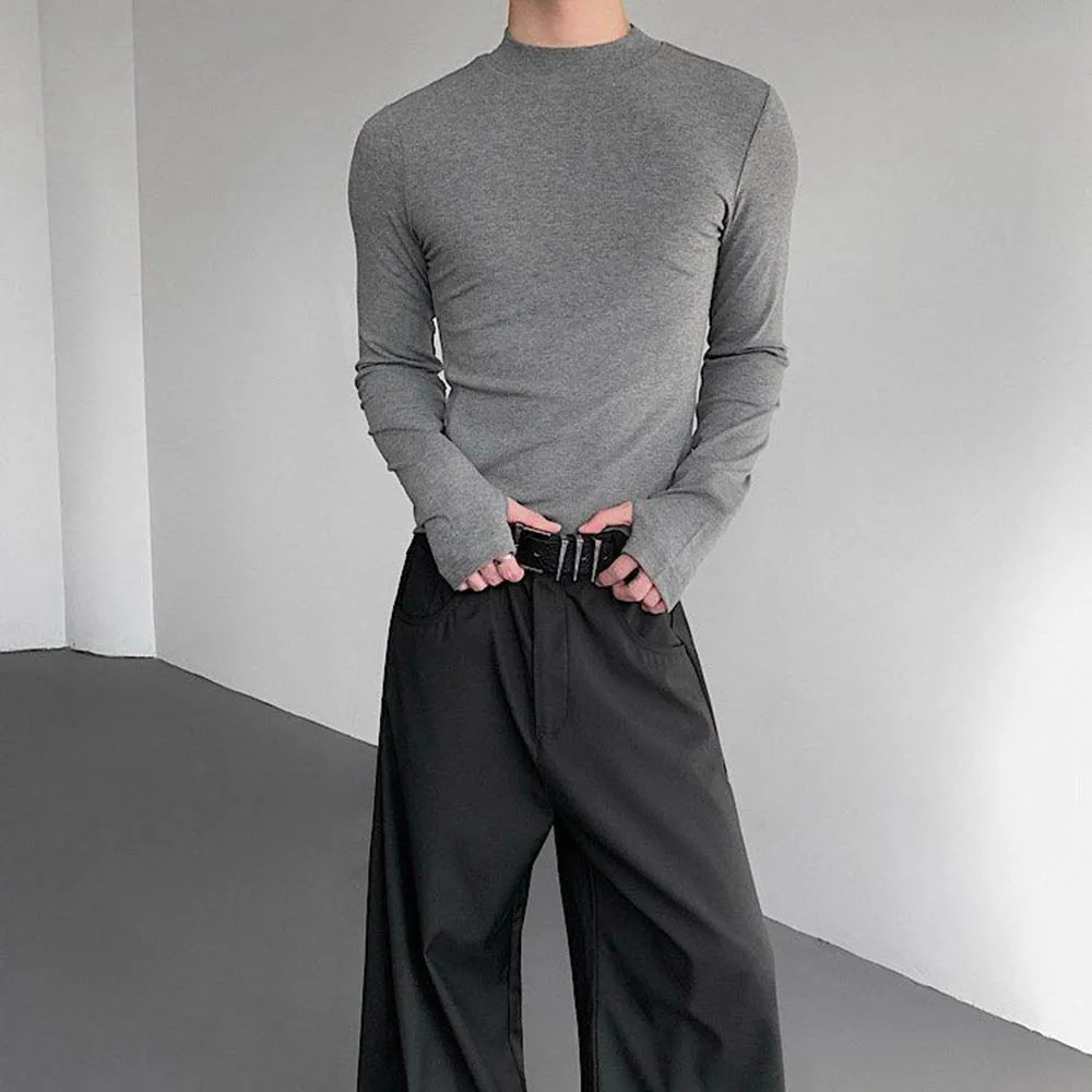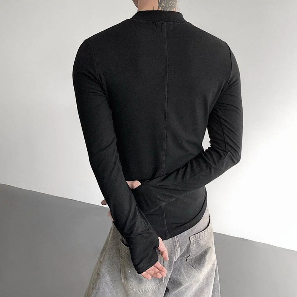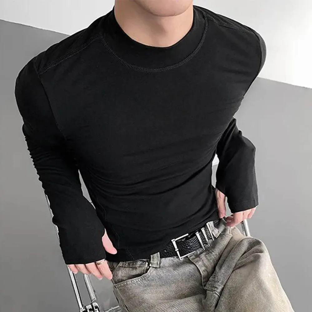 AIDASE - Men's Solid Color Half Turtleneck Long-Sleeved T-Shirt American Retro Fashion Trend High Street Slim Breathable Niche Men's Tops