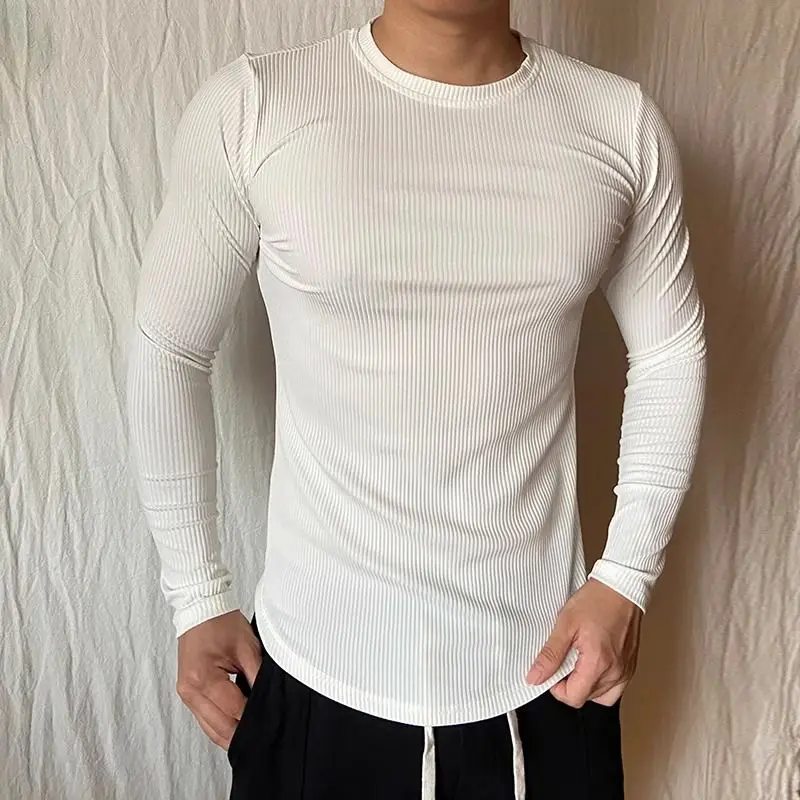 AIDASE - Sports Long-sleeved T-shirt Fitness Tights Slim Elastic Striped Round Neck Casual