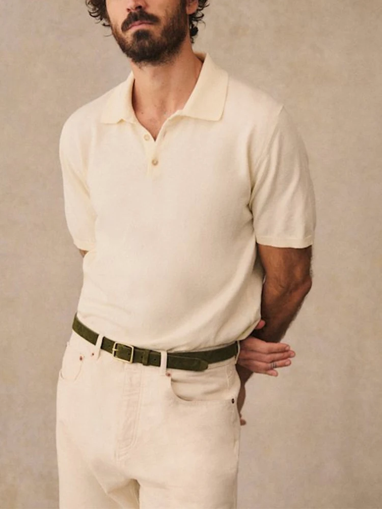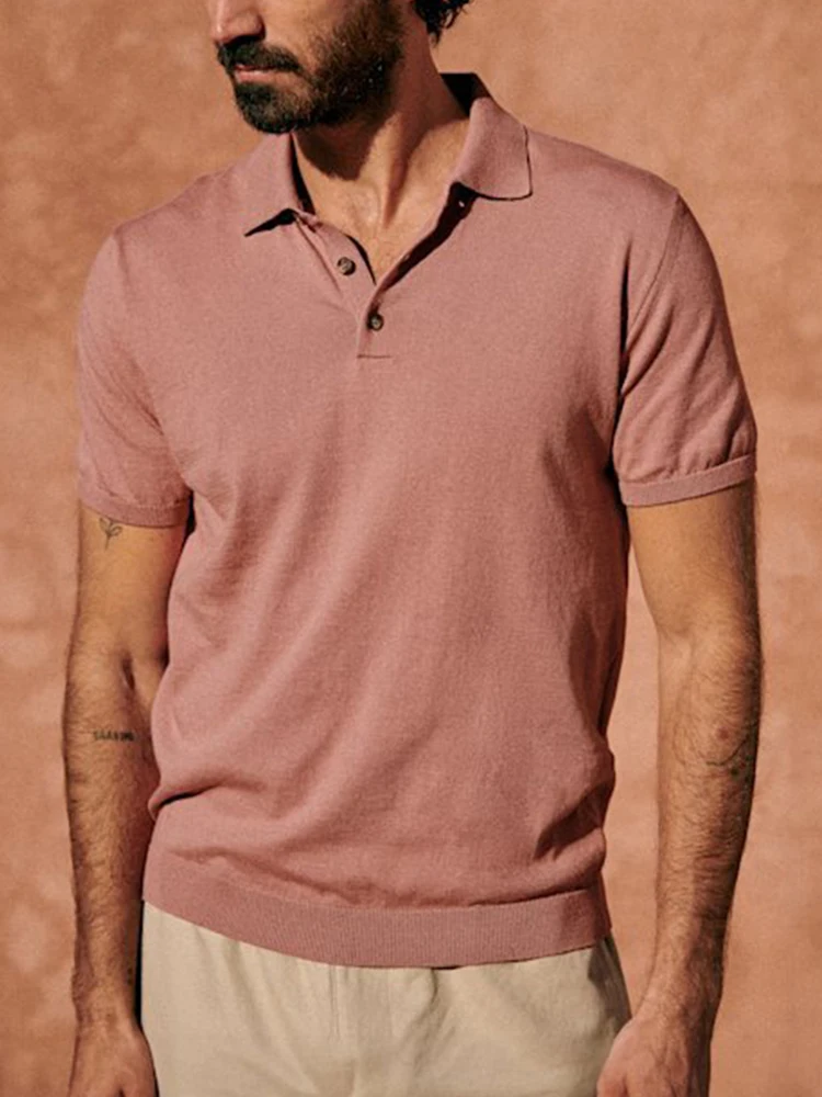 AIDASE - Summer Fashion Solid Color Polo Neck Tops Knitting Mens Short Sleeve Button-up Polos Spring Casual Men's Slim Fit Polo Shirts