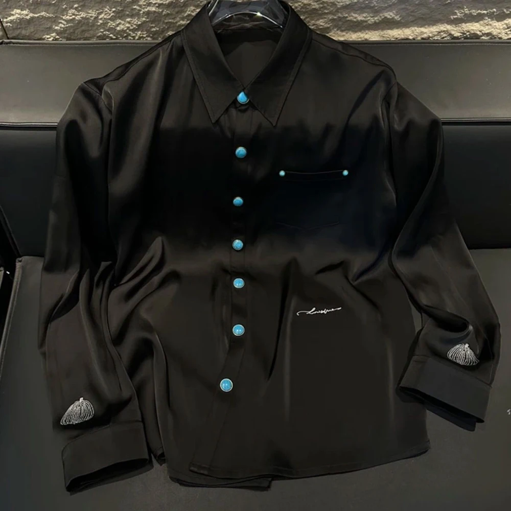 AIDASE - Summer New Men's Solid Color Long-Sleeved Shirt Korean Retro Fashion Trend Street Casual Simple Loose Breathable Niche Mens Tops