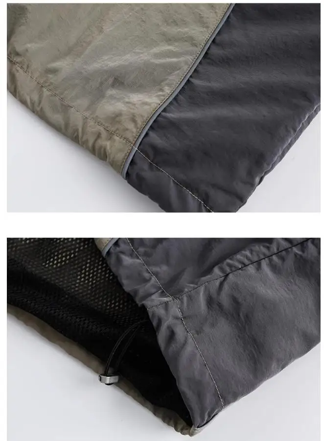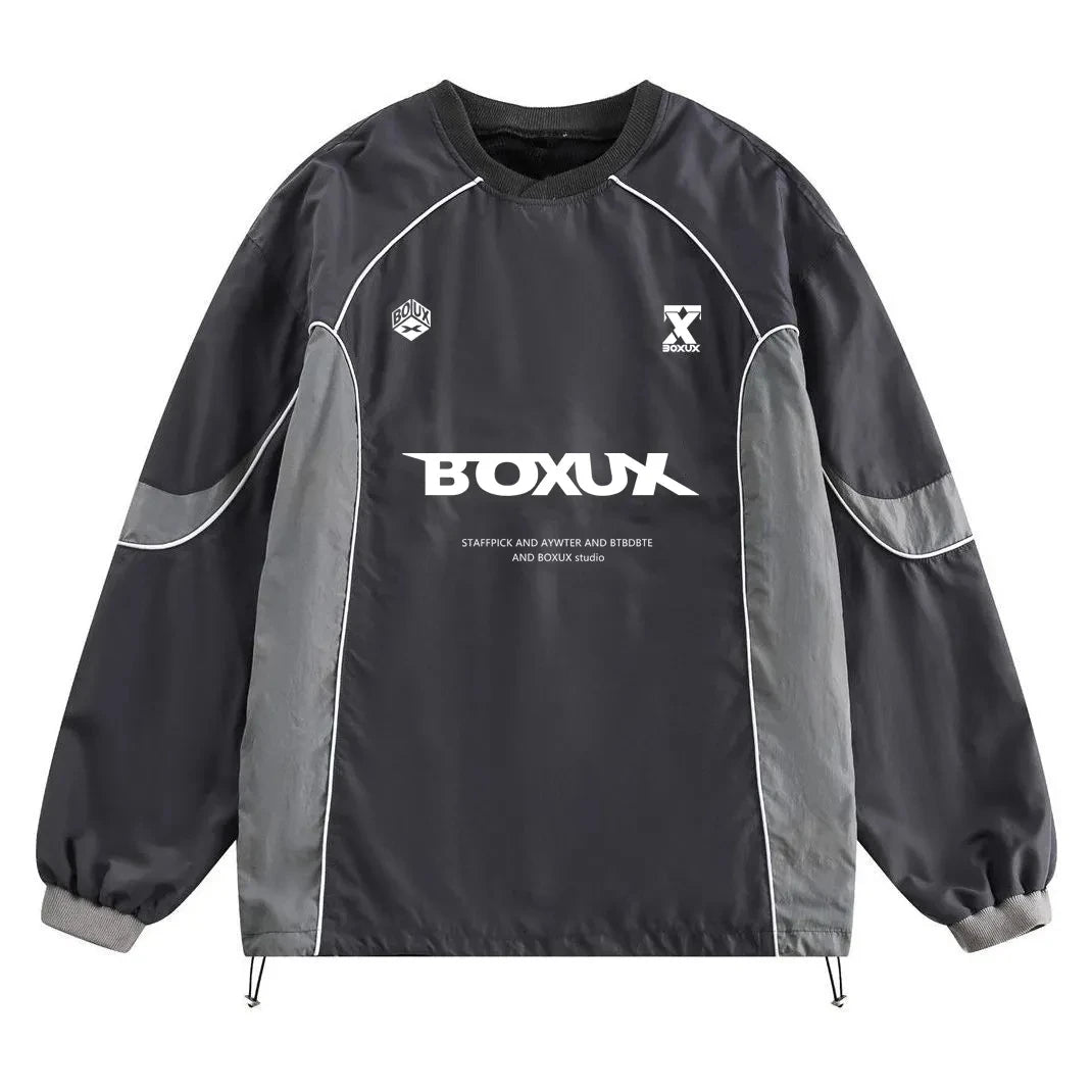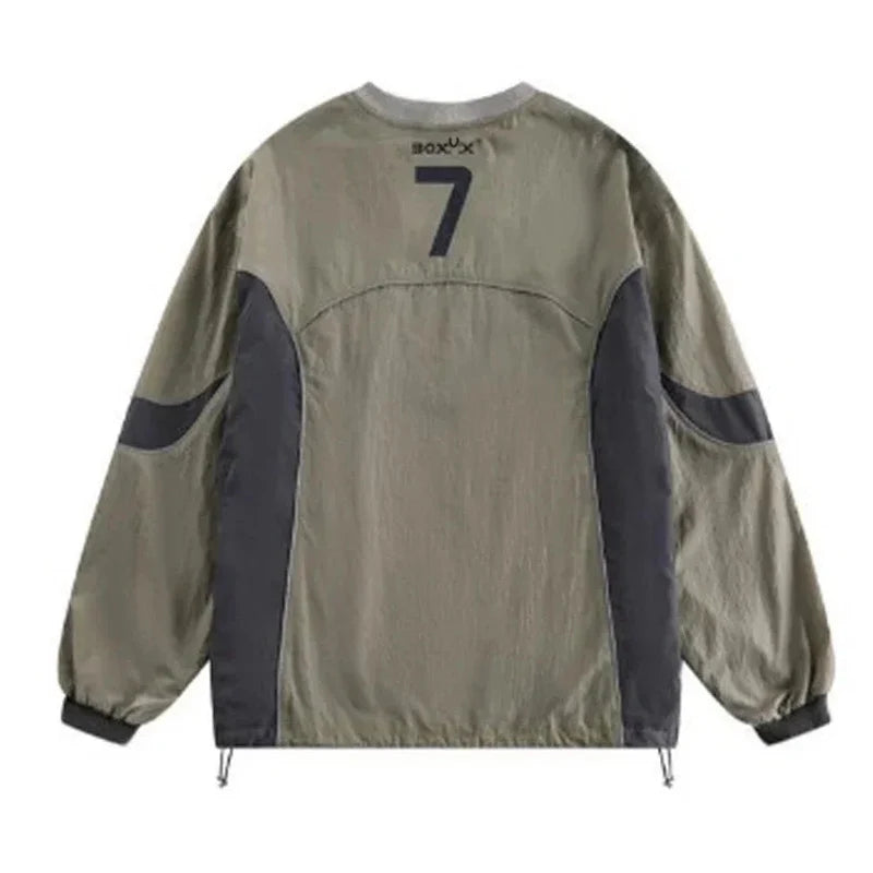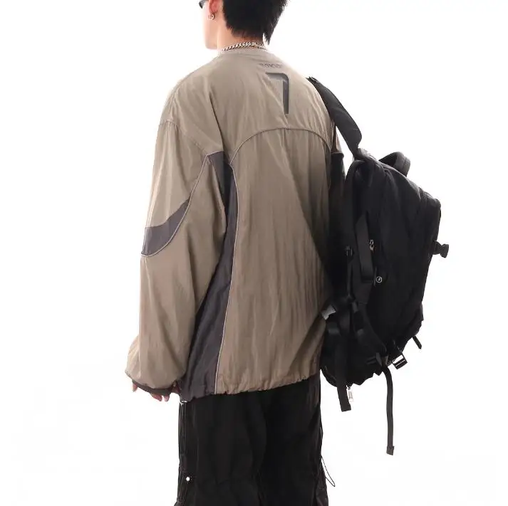 American Men Women Sweatshirt Drawstring Spring High Street Functional Punk Color Block Letter Print Loose O-Neck Tops Hip Hop