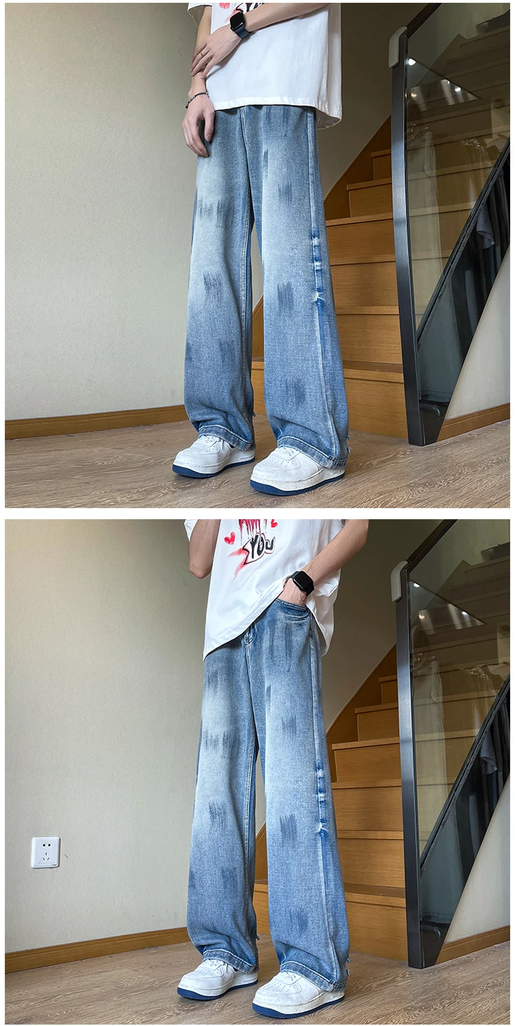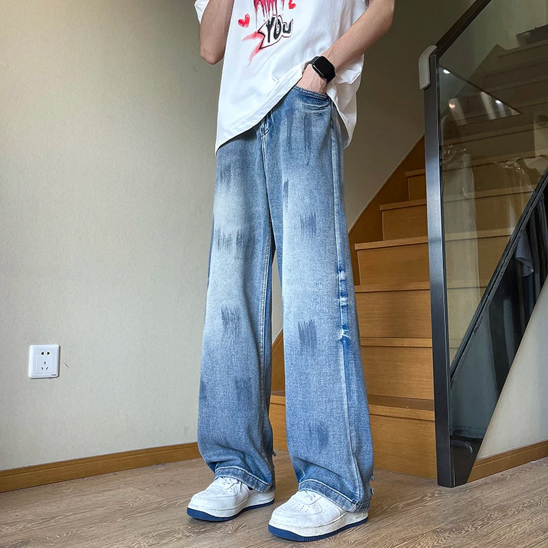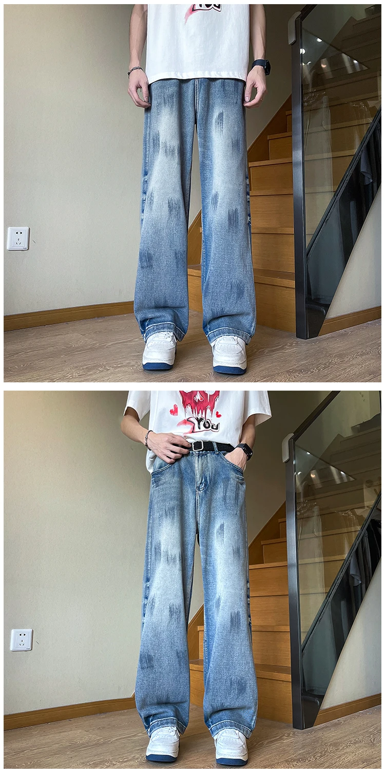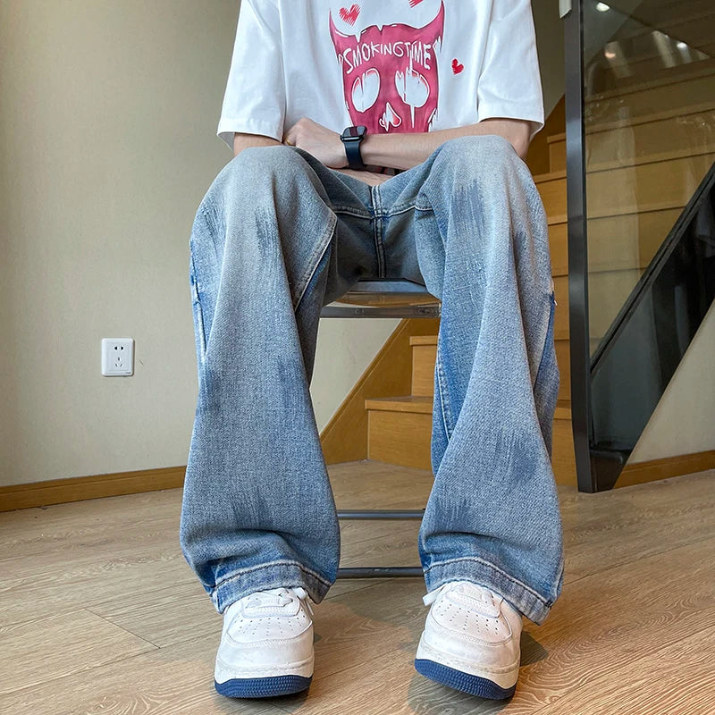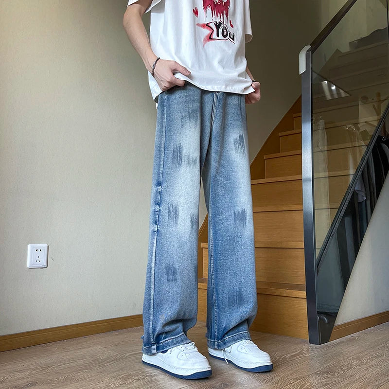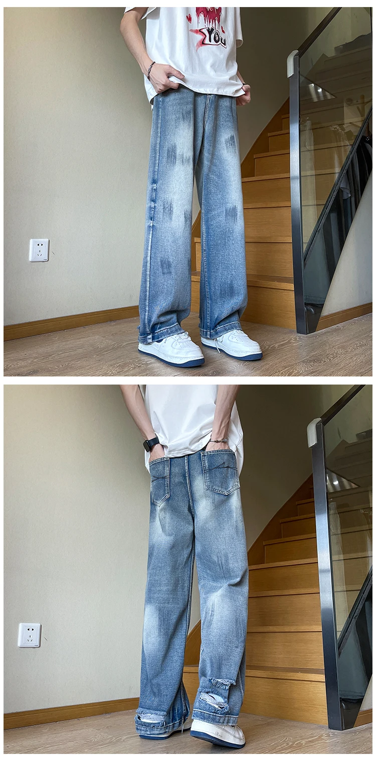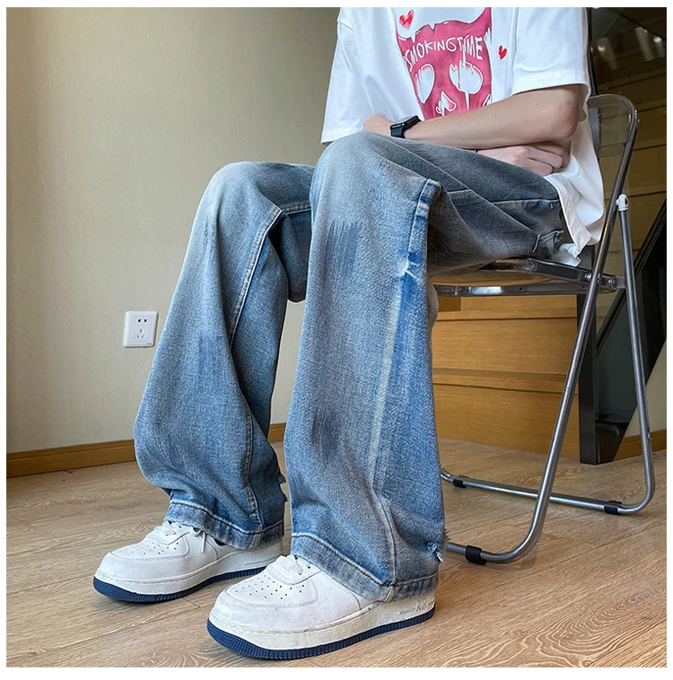 AIDASE - American Sle Faded Waed Straight Leg Loose Fit Trendy Jeans for Men And Women High Street Vintage Vibe Casual Jeans