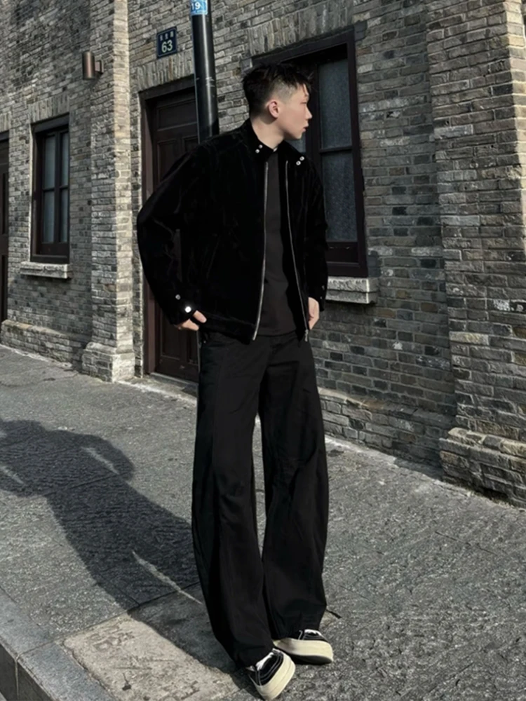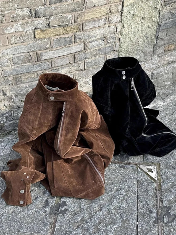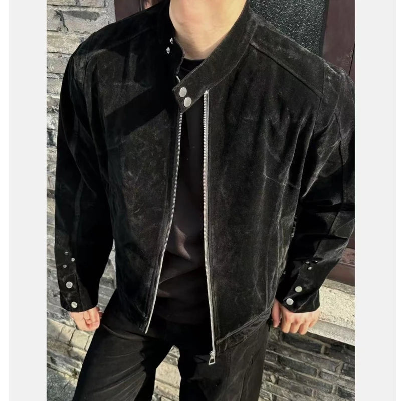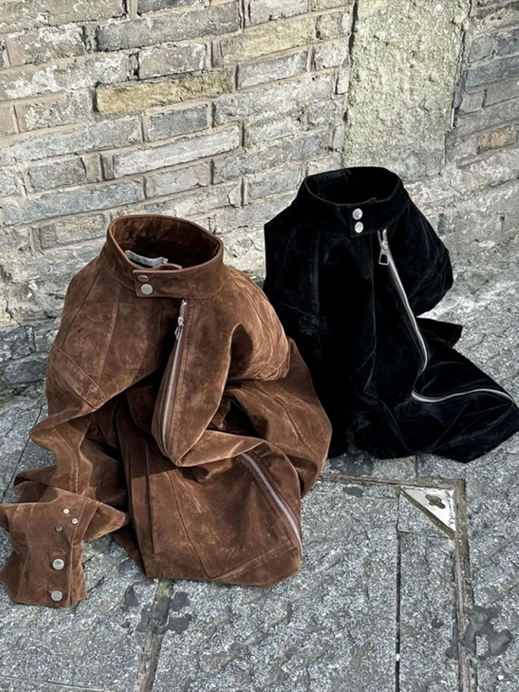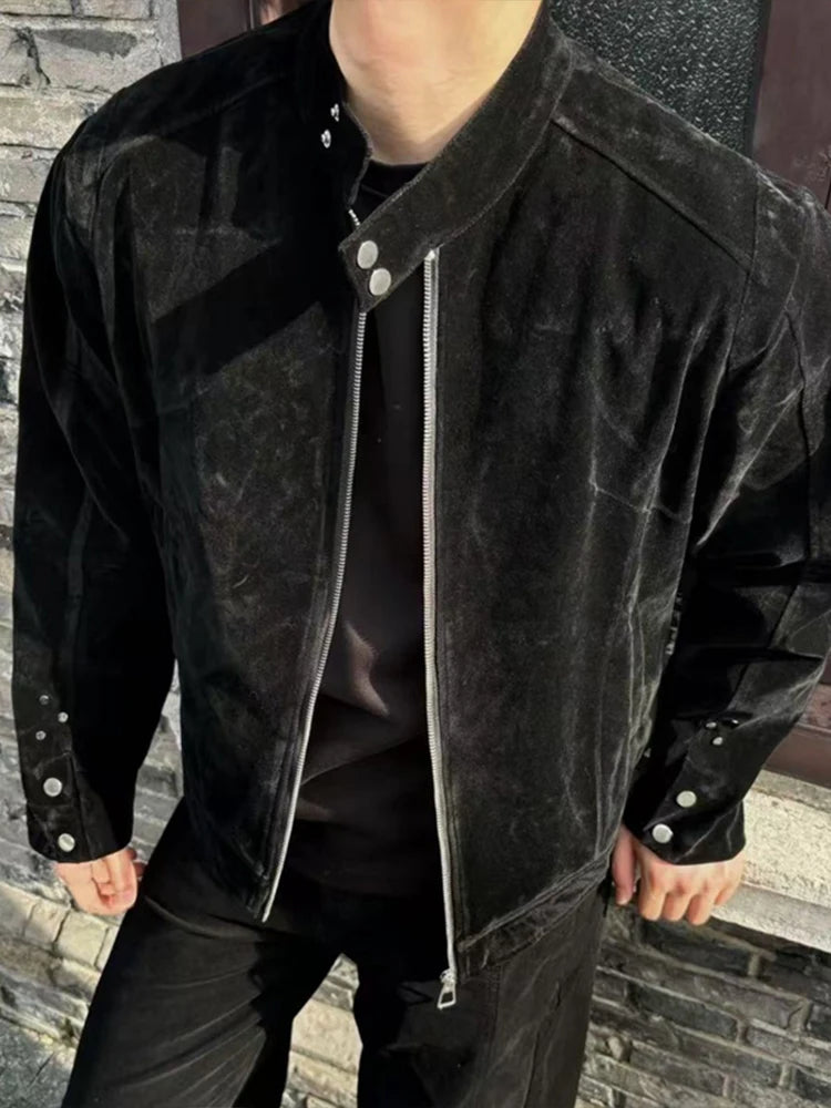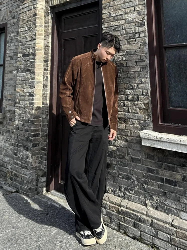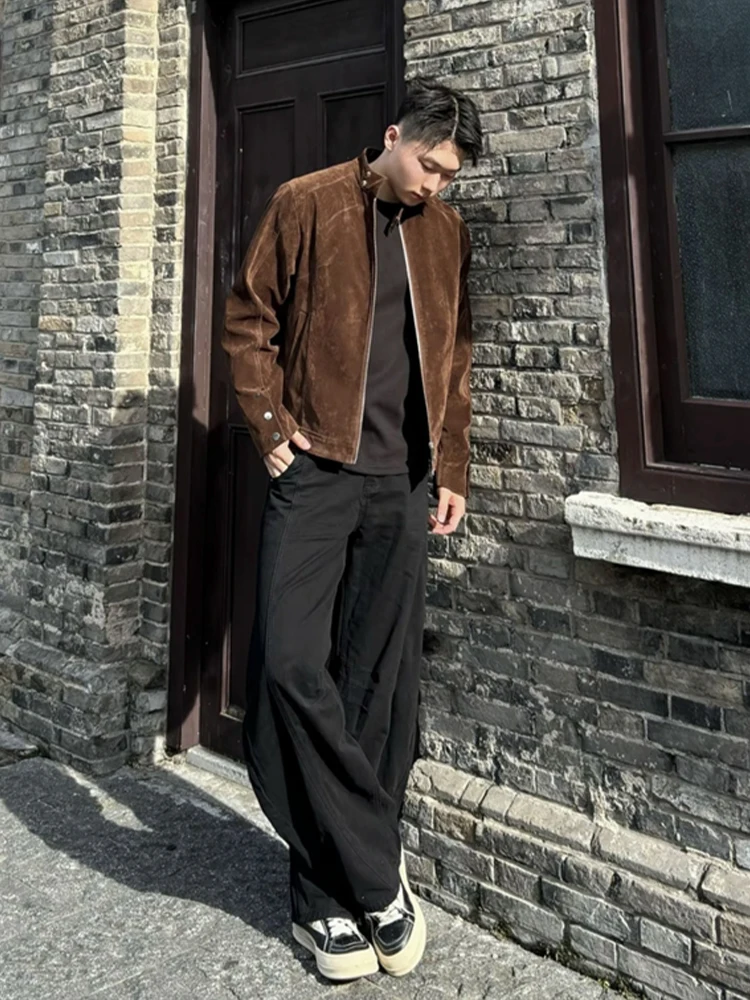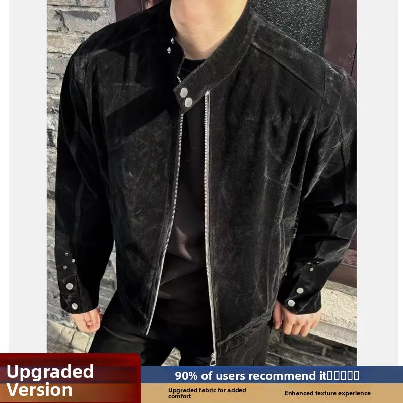 AIDASE - Caramel American Retro Stand Collar Jaet Men's ort Design Sense Vintage Sle High-End Feel Outerwear Autumn Season