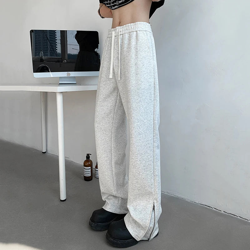 AIDASE - Drawstring Men Sweatpannts American Style Solid Color Elastic Waist Bottom Zipper Patchwork Straight Male Trousers 24K2733