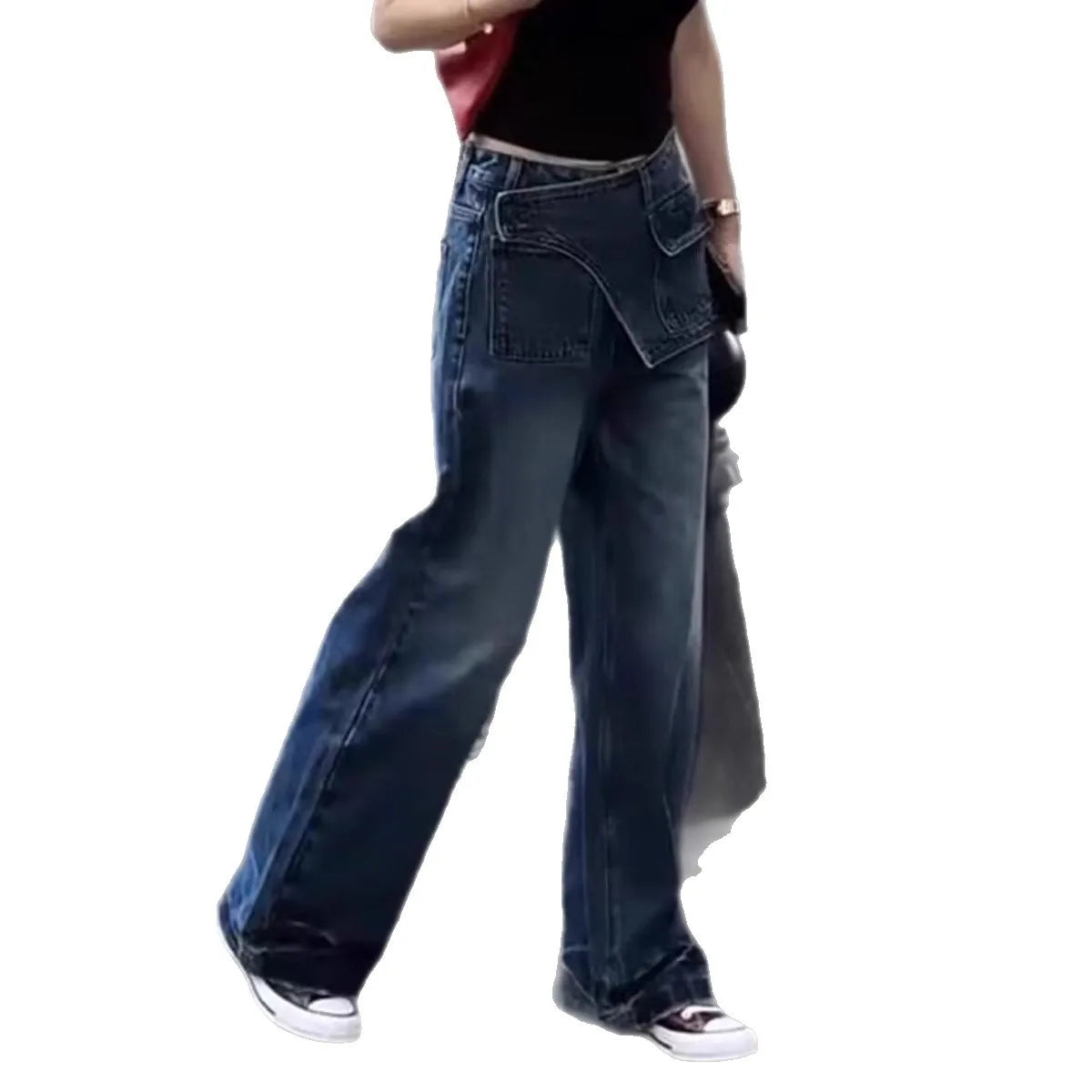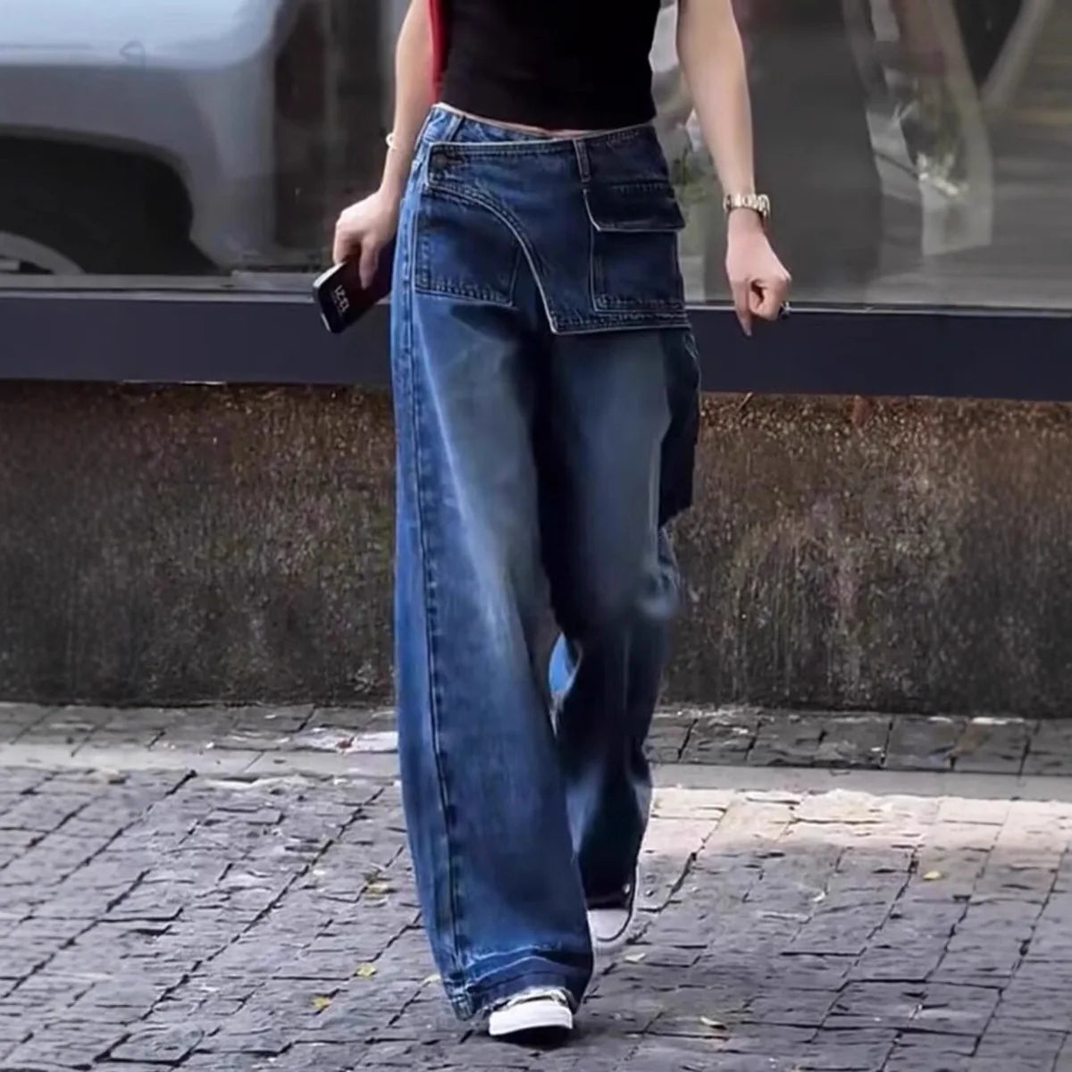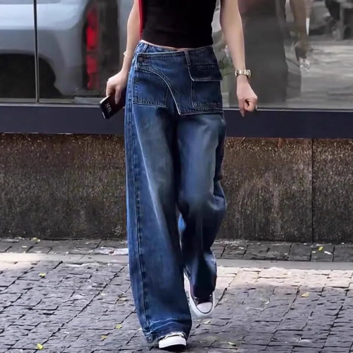 AIDASE - High Waist Wide Leg Straight Cut Denim Jeans Women's Early Autumn New Style American Retro Loose Fit Slimming Pants