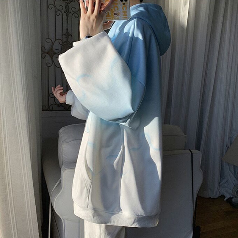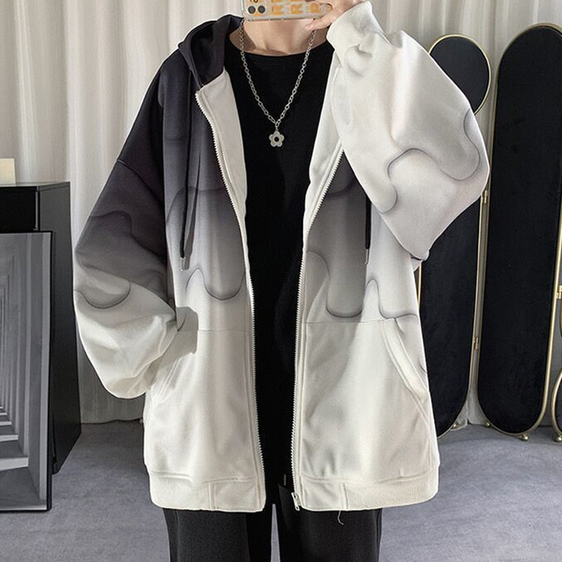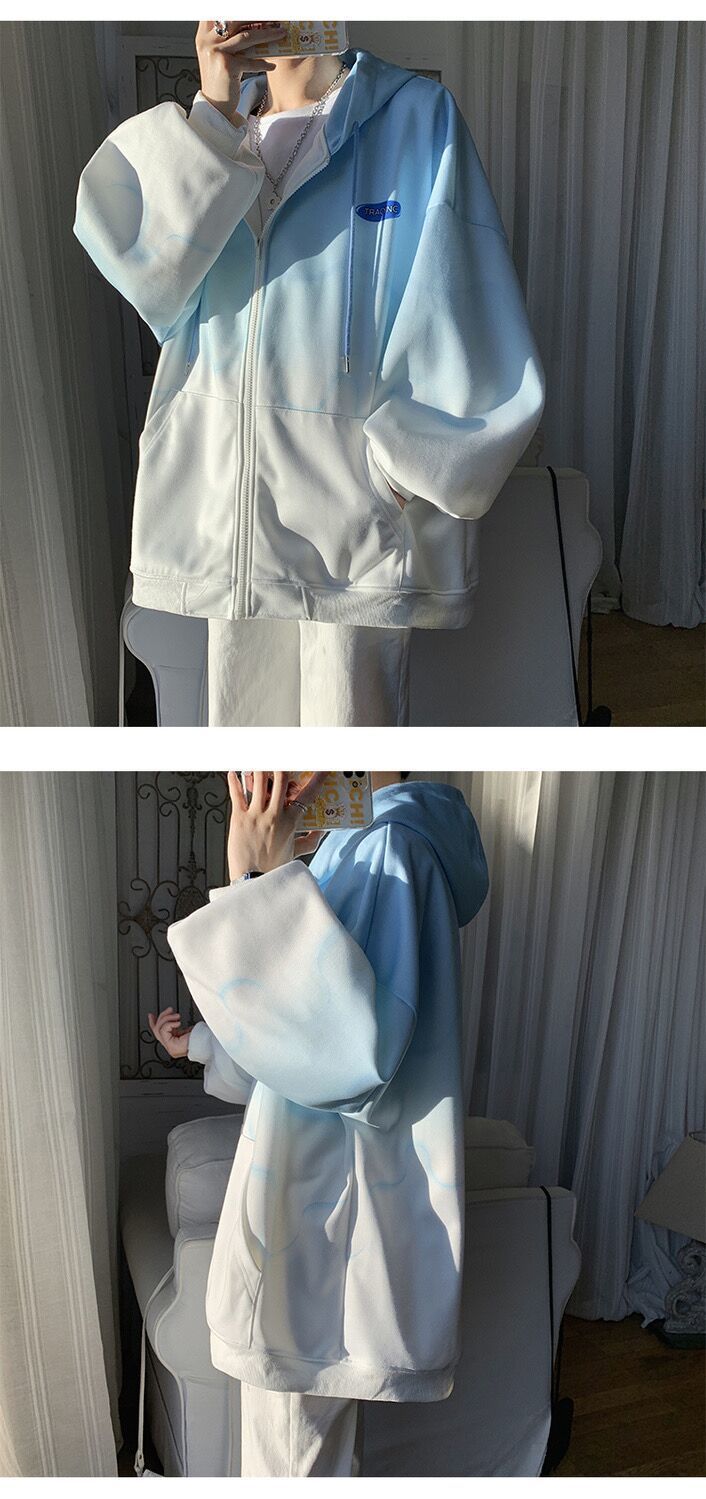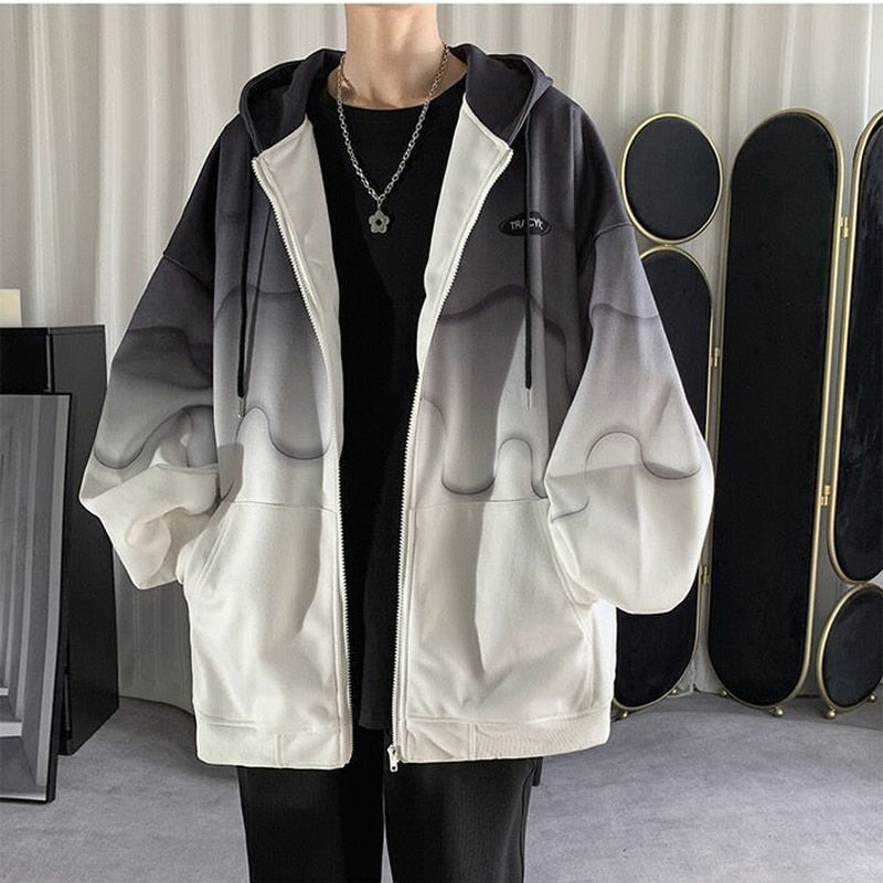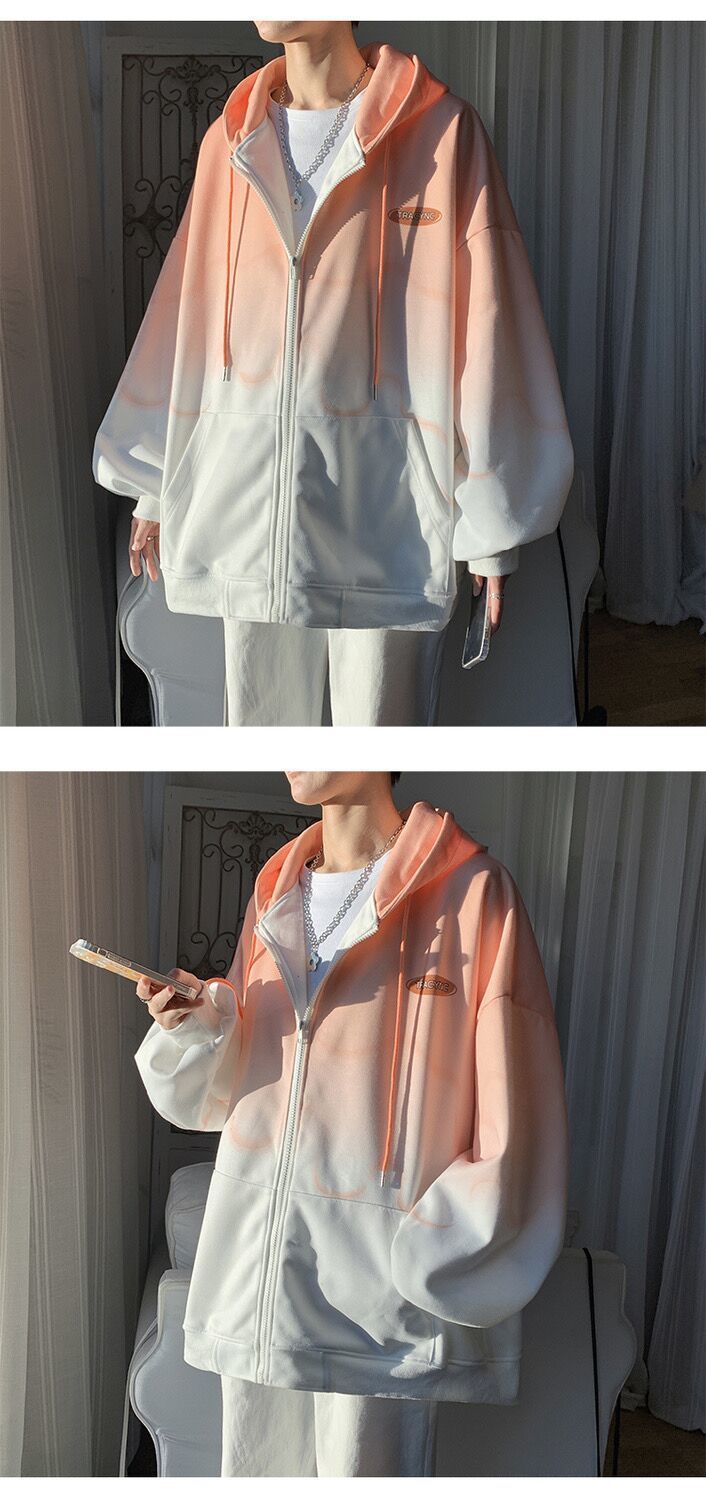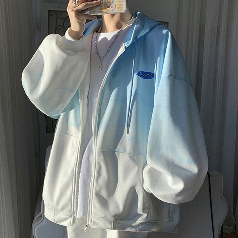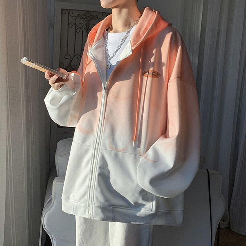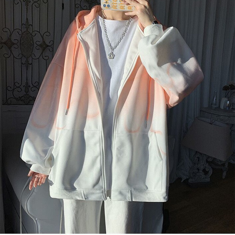 Aidase Hooded Sweatshirt Gradient Female Loose Korean Fashion Zipper Cardigan Sweater New Hip-hop Drawstring Pocket Decoration Itself