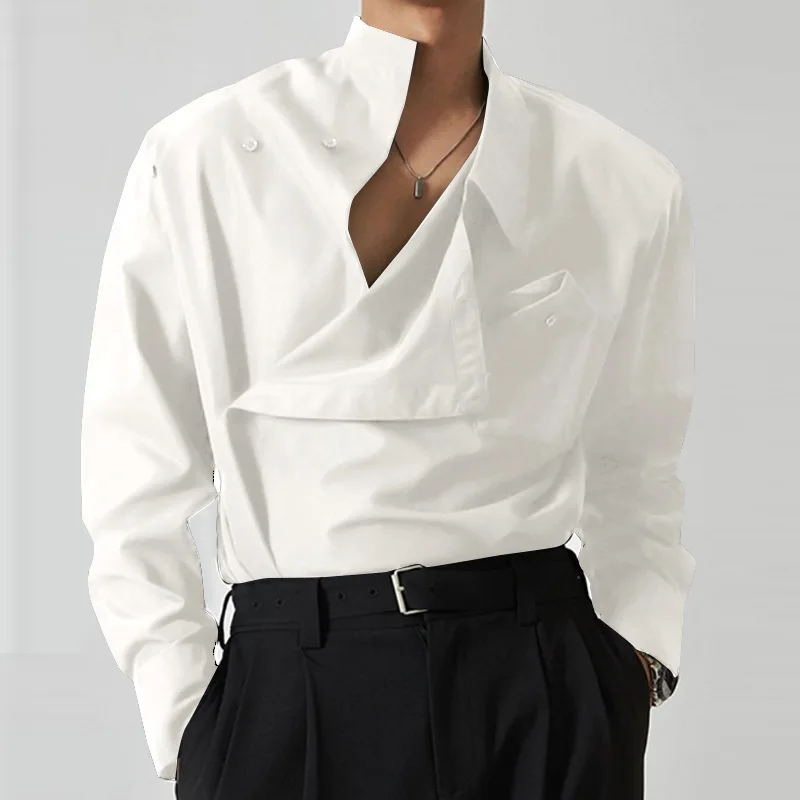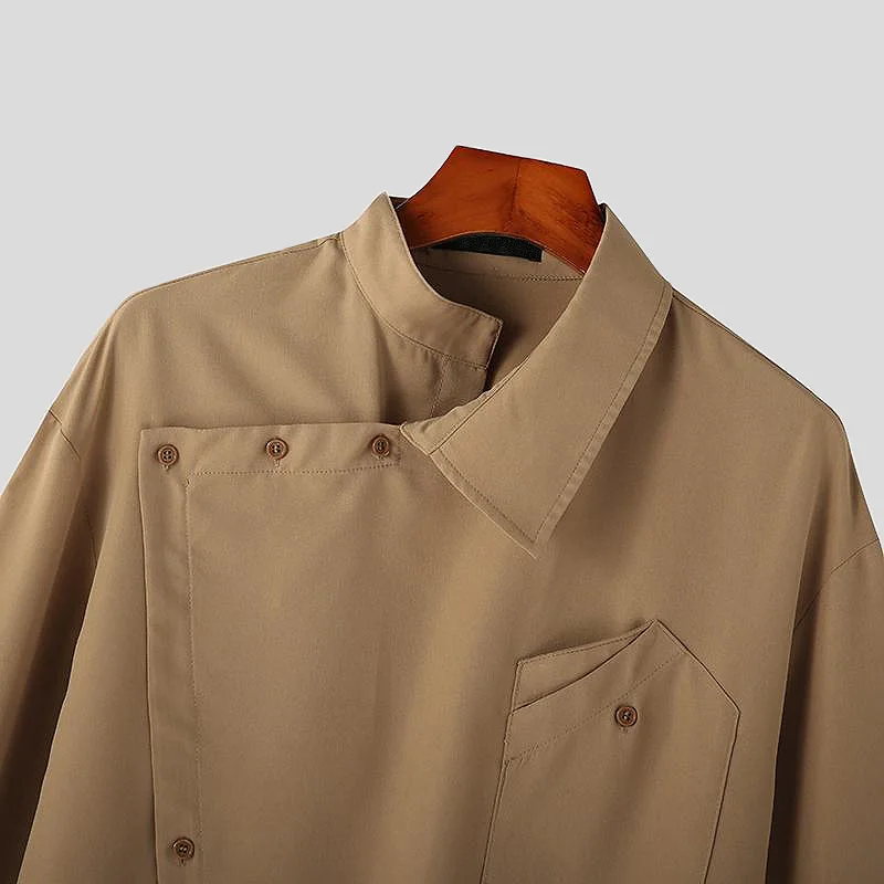 Aidase Irregular Design Buckle Lapel shirt For Men Vintage French Style Long Sleeve Loose Top Spring Autumn Fashion Show Chic Shirts