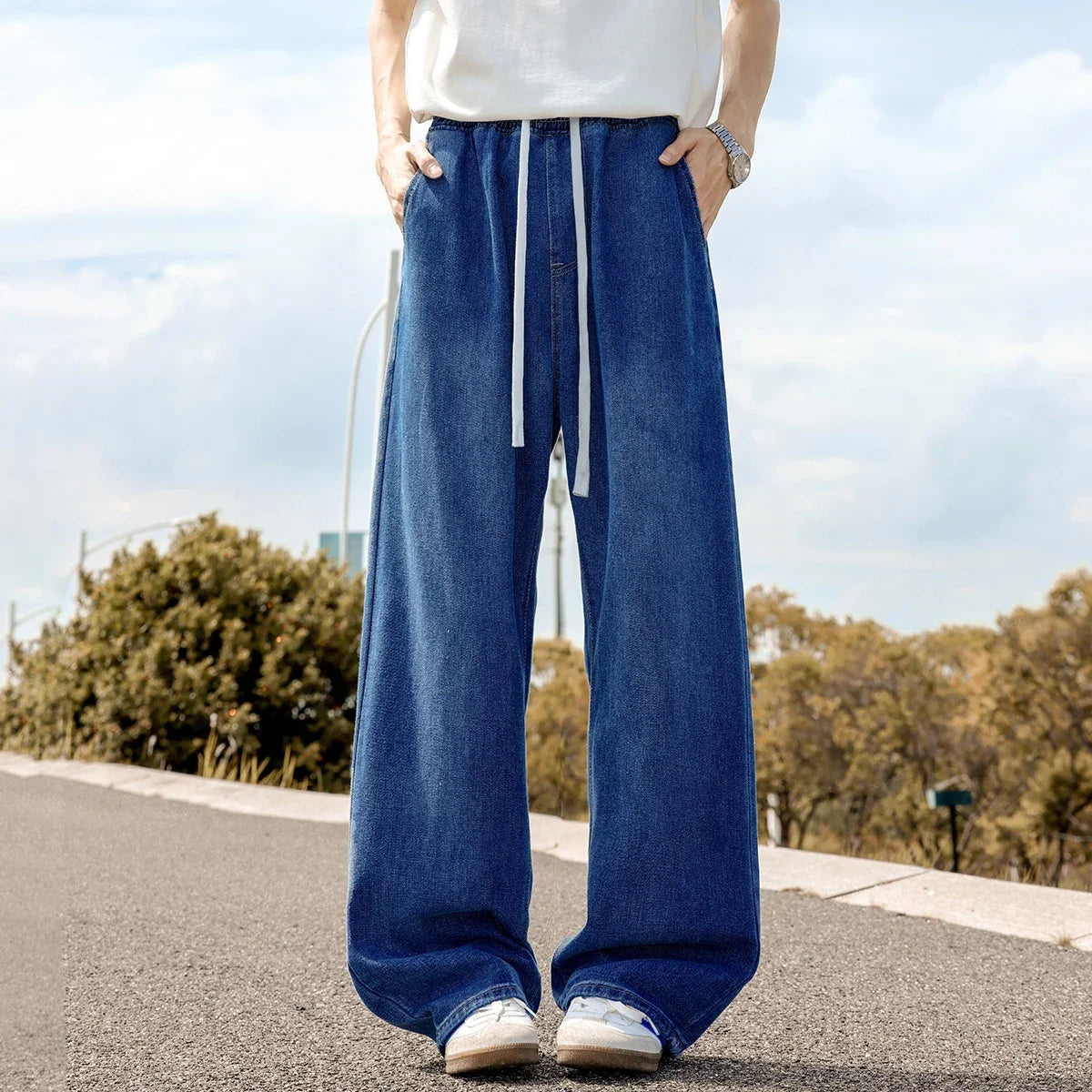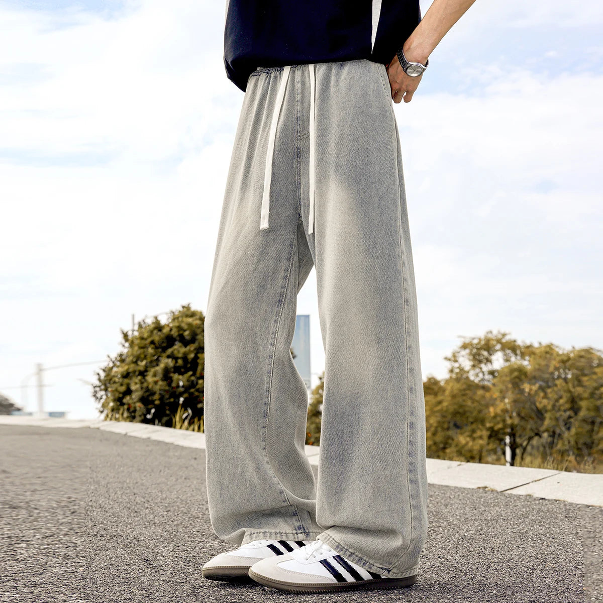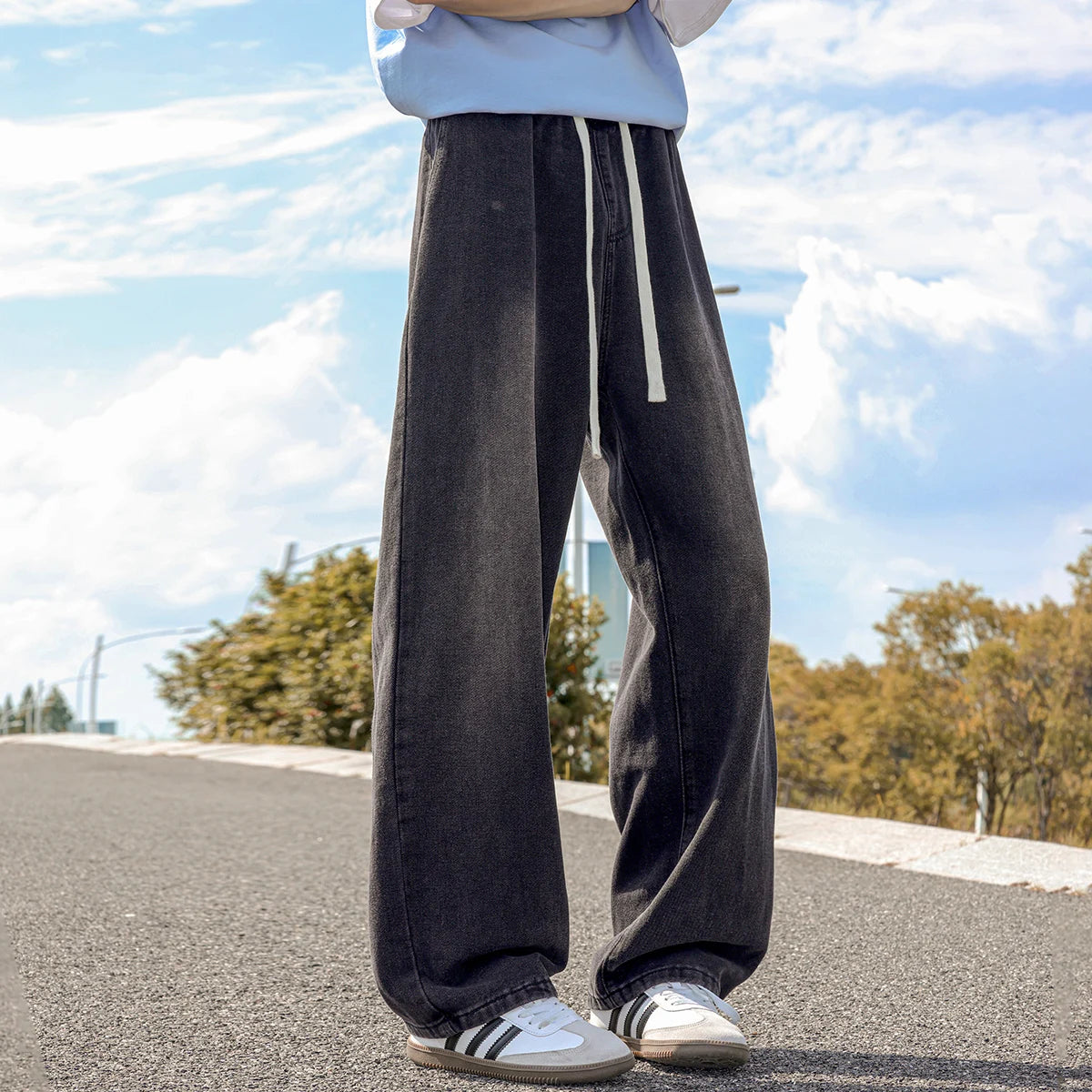 AIDASE - Korean Streetwear Baggy Jeans Men Fashion Loose Straight Wide Leg Denim Pants Autumn New Men's Brand Clothing Long Jean Trousers
