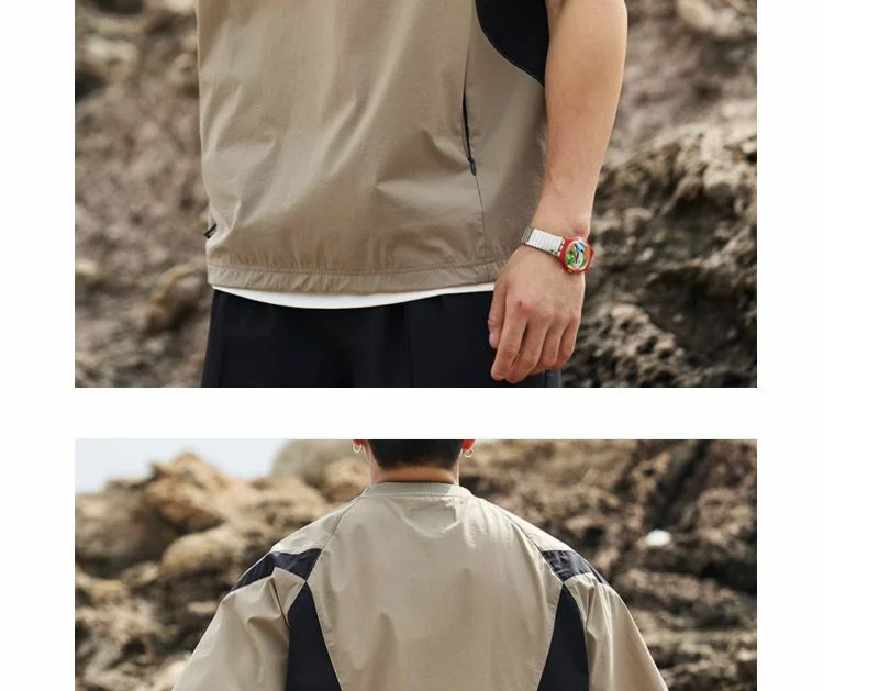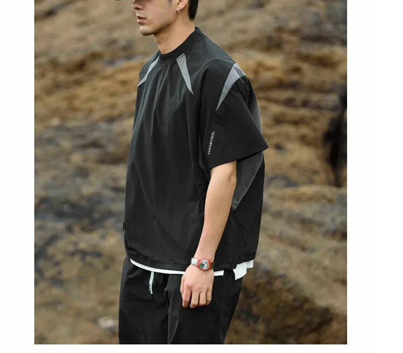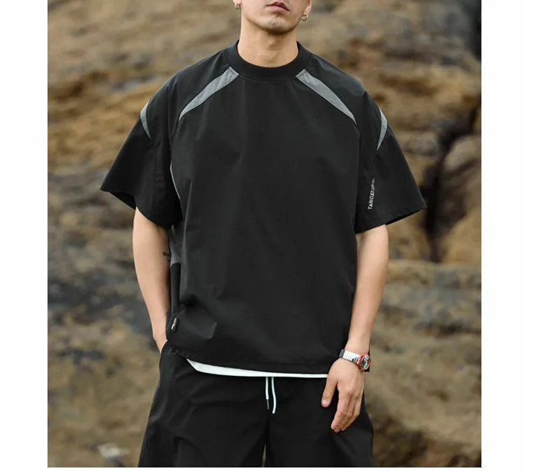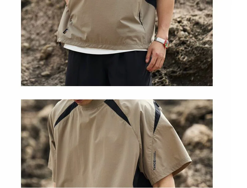 AIDASE - Limited Outdoor Functional T-shirt Japanese Zipper Pocket Patchwork Letter Printed Small Neck Pullover T-shirt Quick Drying Tees