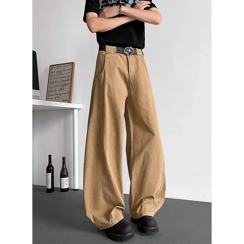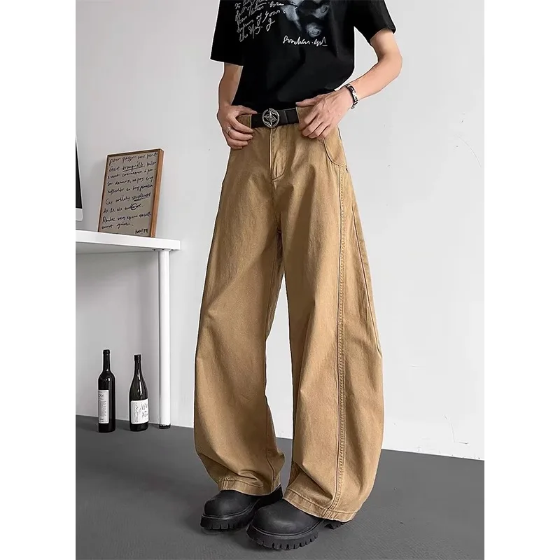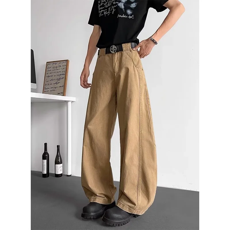 AIDASE - Loose Wide Leg Straight Cut Casual Long Jeans Men Women Design Sense Retro American Khaki Knife Jeans Youth Faion Brand