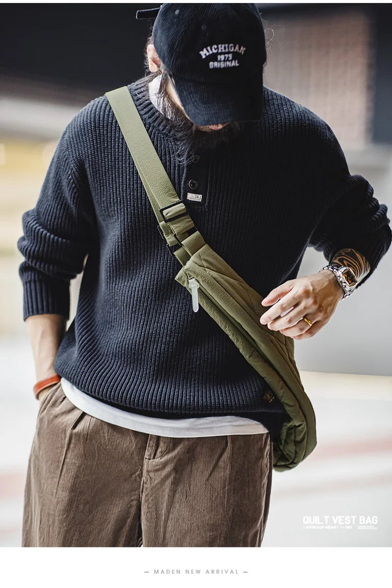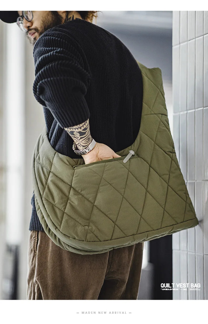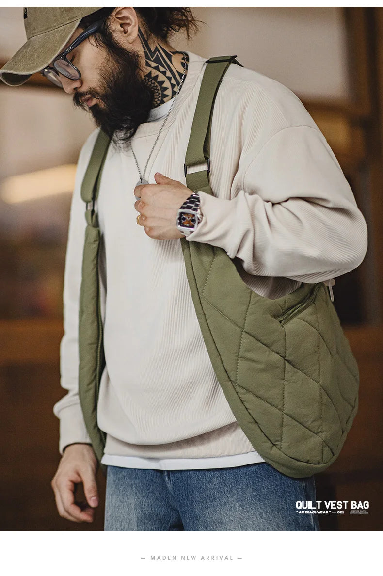 Aidase Maden Men's Quilted Vest Bag Large-capacity Crossbody Cotton Bag Outdoor Multifunctional Padded Vest Heated Sleeveless Jacket