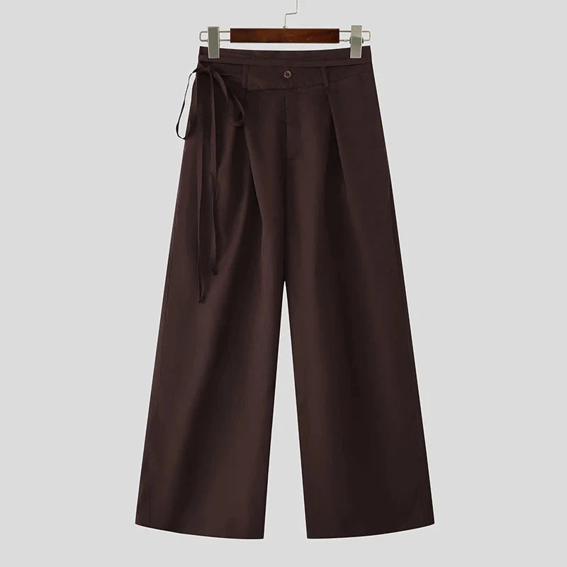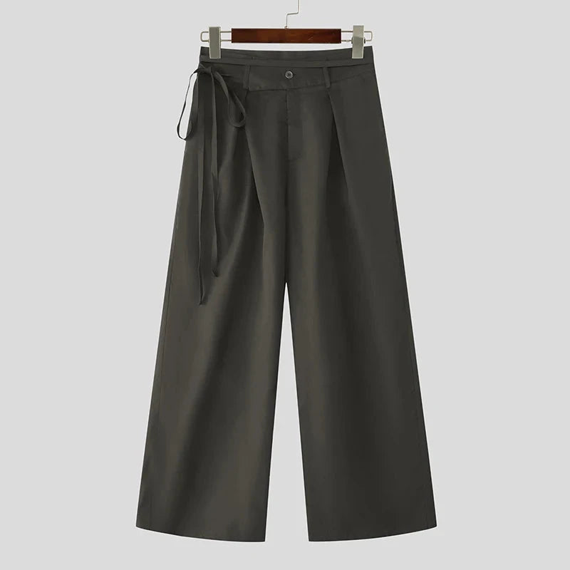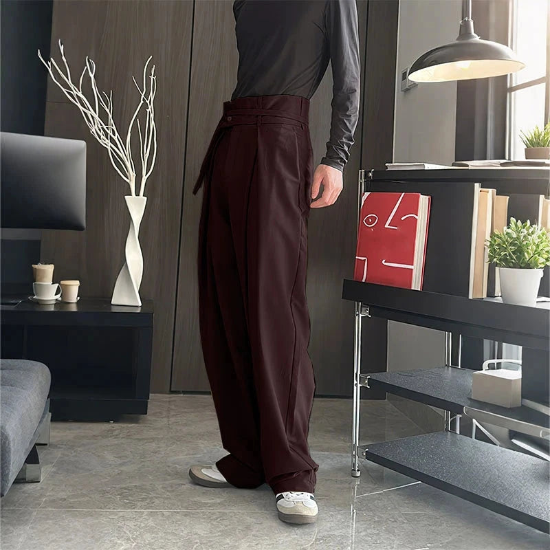 AIDASE - Men Pants Solid Color Button Joggers Loose Casual Wide Leg Trousers Men Streetwear 2025 Pleated Fashion Long Pants S-5XL