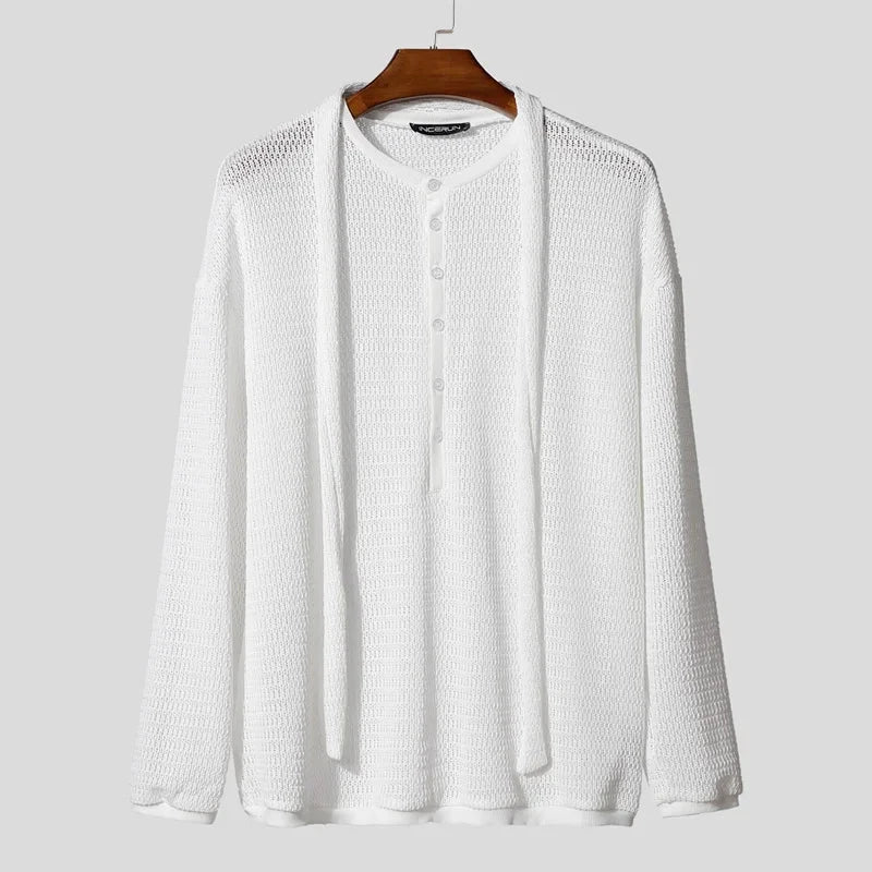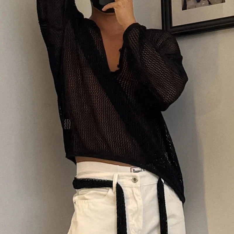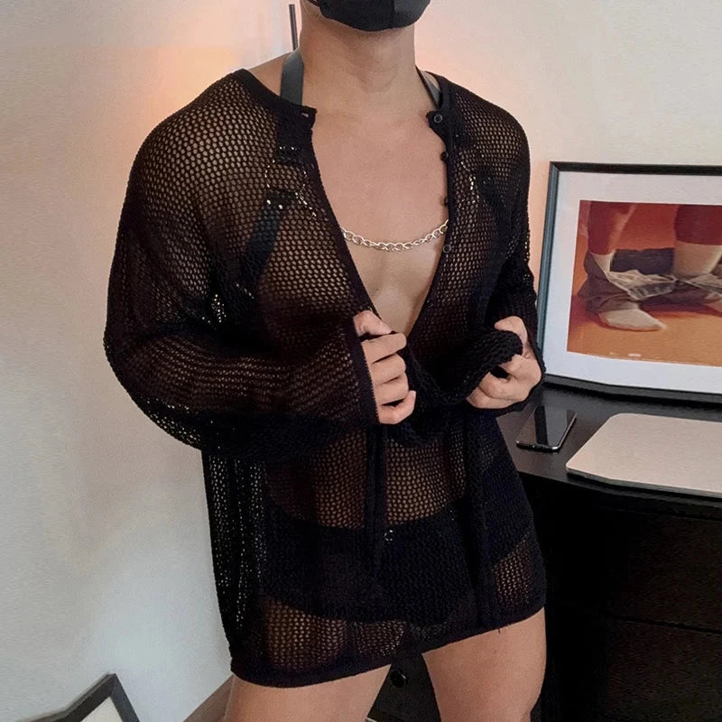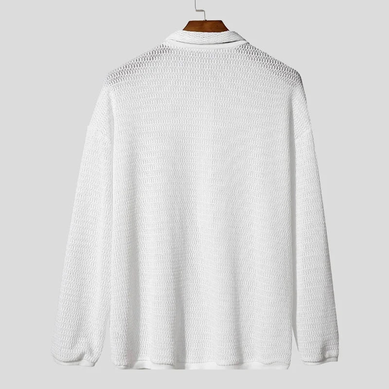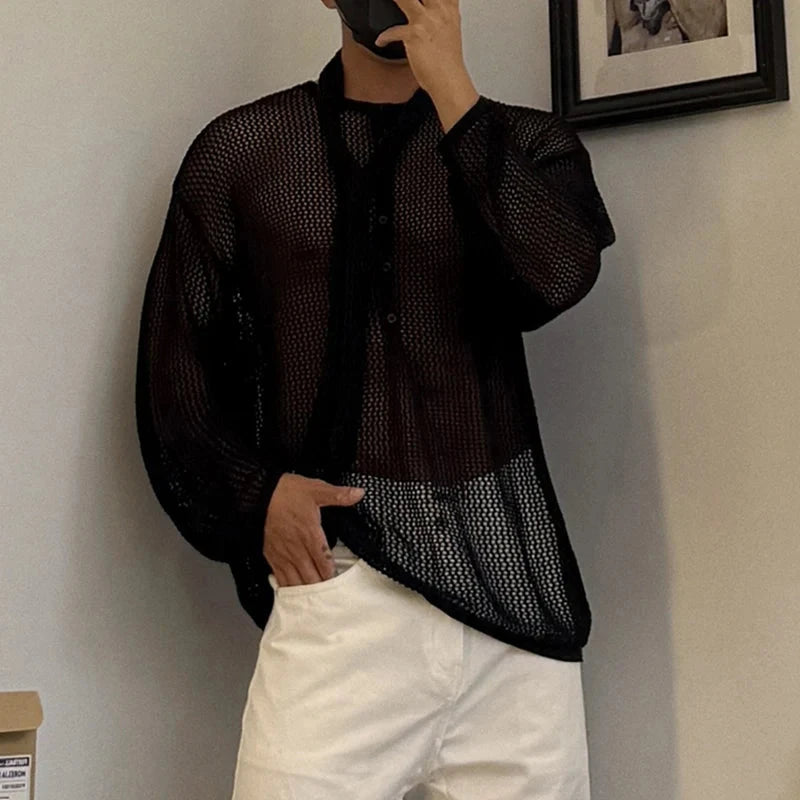 AIDASE - Men Sweater Solid V Neck Long Sleeve Hollow Out See Through Male Pullovers Streetwear Loose Fashion Casual Men Clothing
