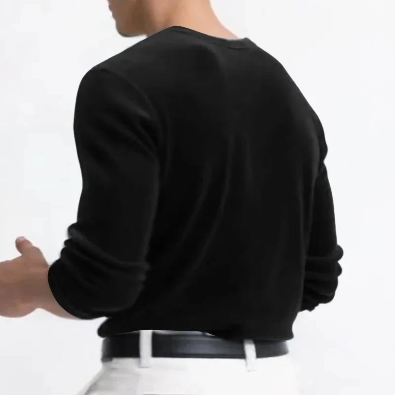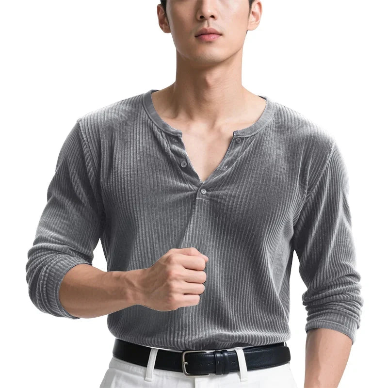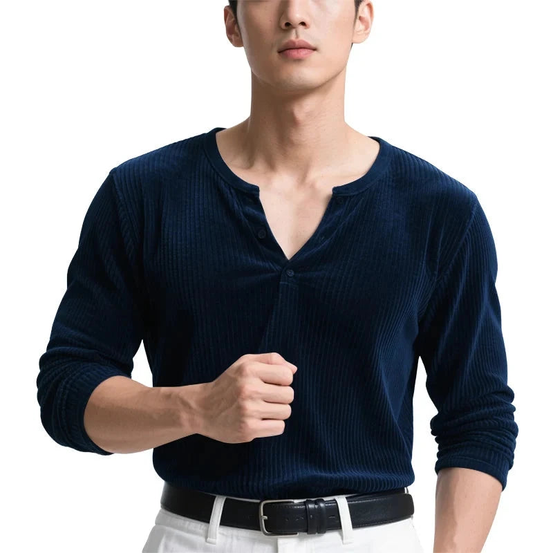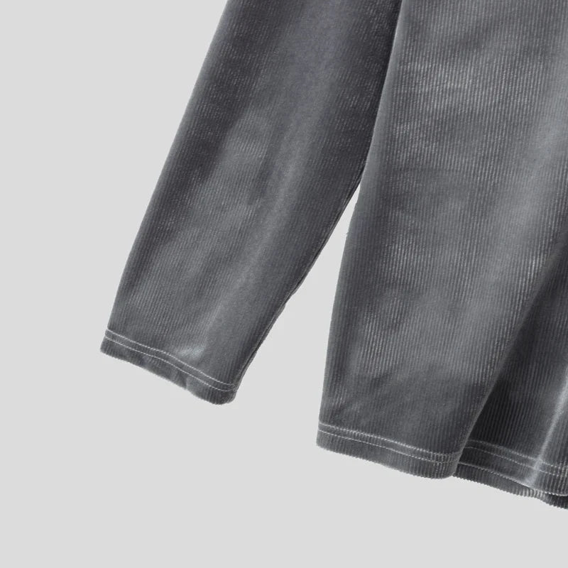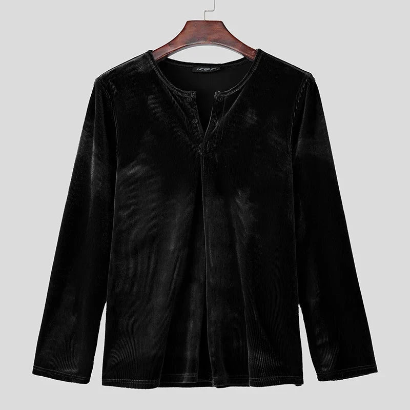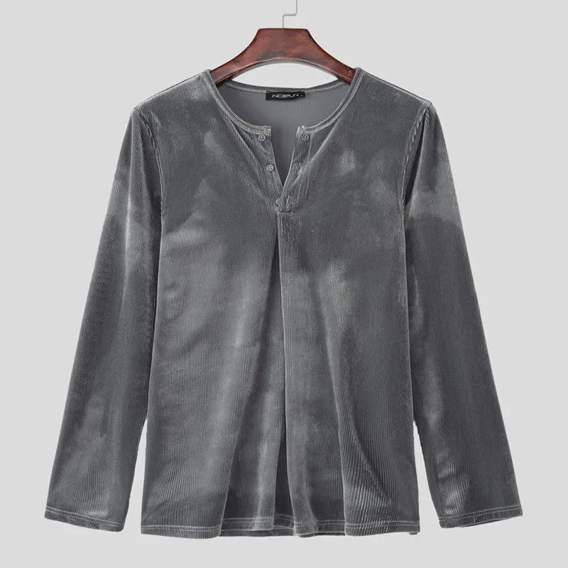 AIDASE - Men T Shirt Solid Color V Neck Long Sleeve Velour Casual Male Tee Tops Streetwear 2025 Loose Fashion Men Clothing S-3XL