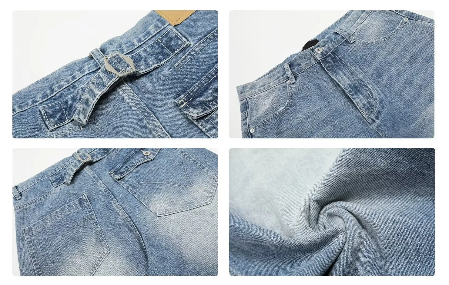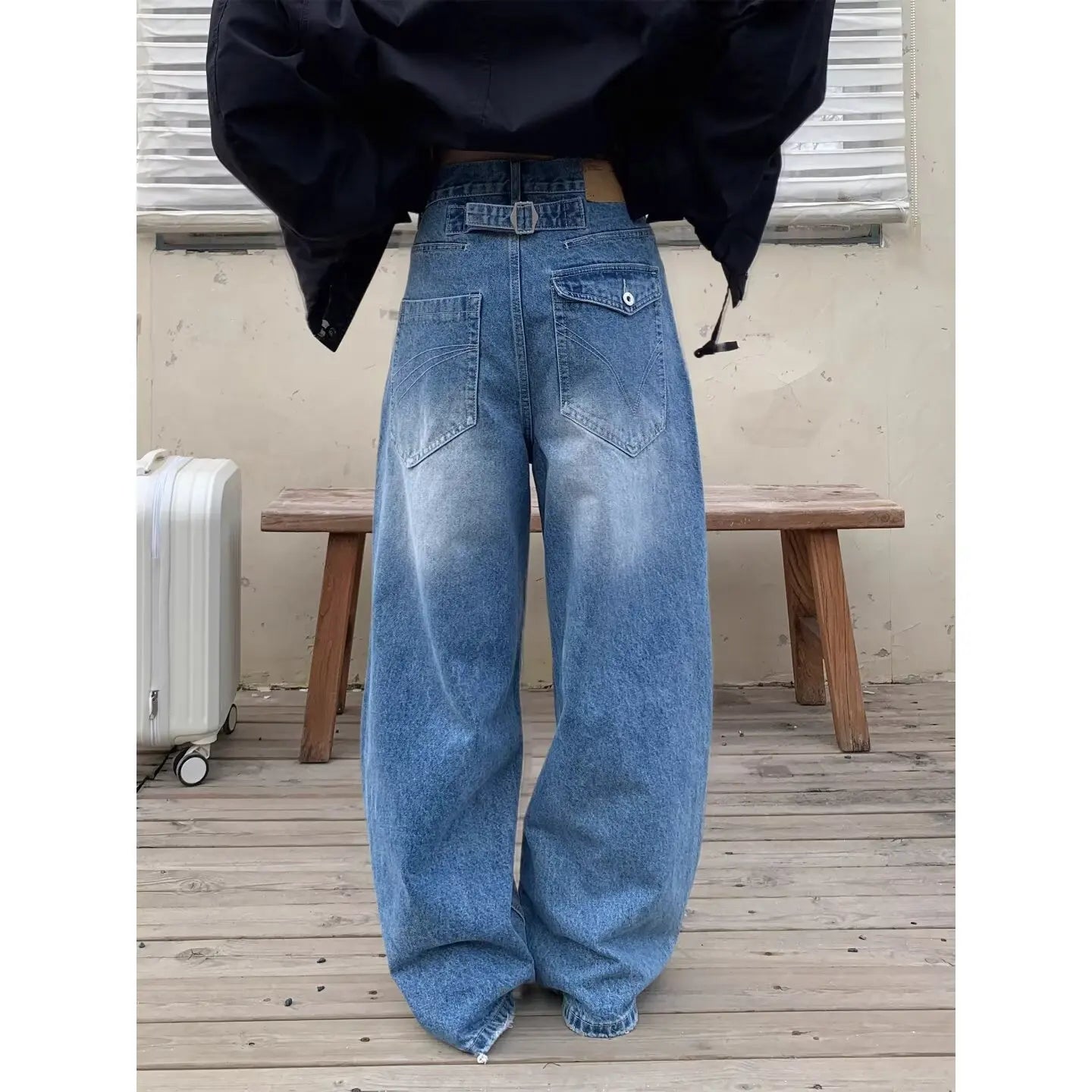AIDASE - Retro American Waed Blue Straight Leg Jeans Men Women Casual Loose Wide Leg Long Pants Vintage Denim Trousers for All