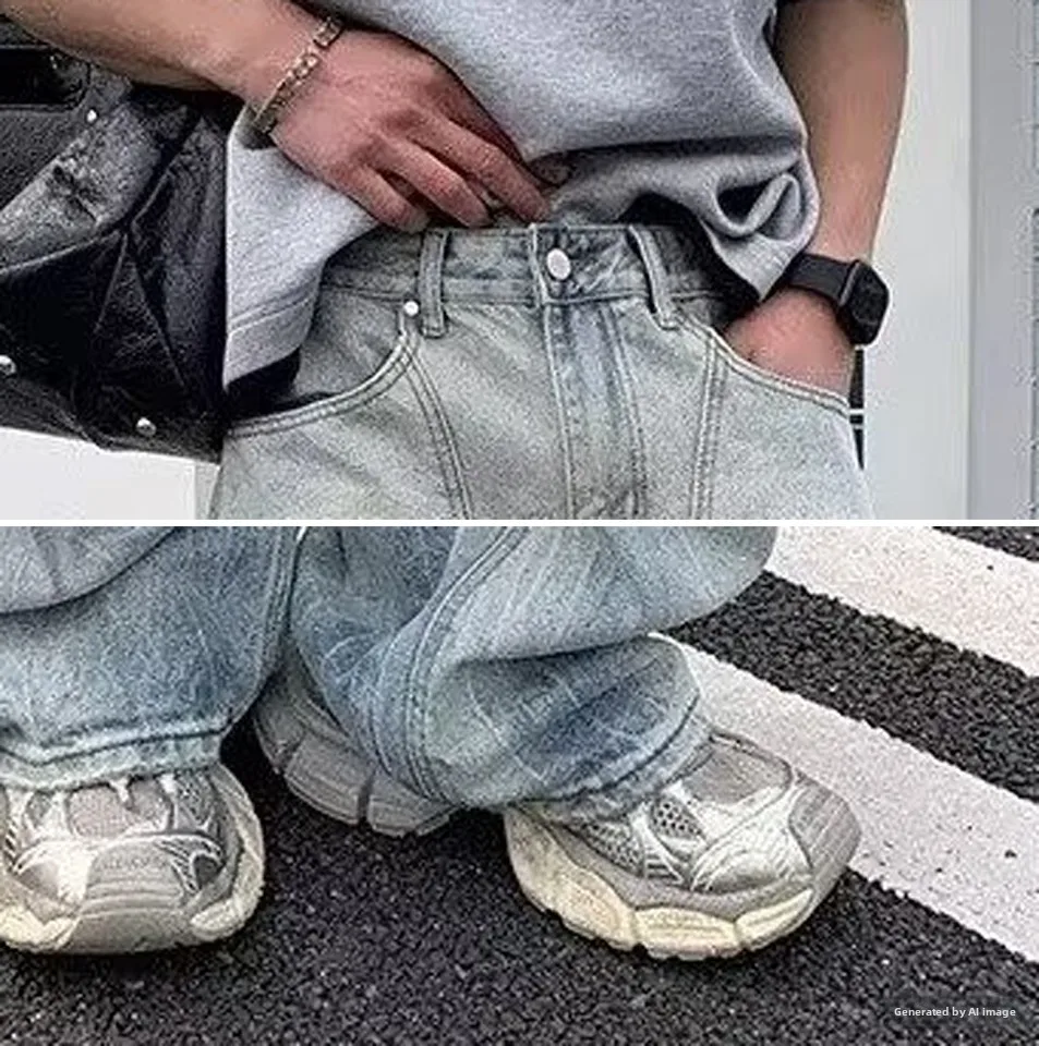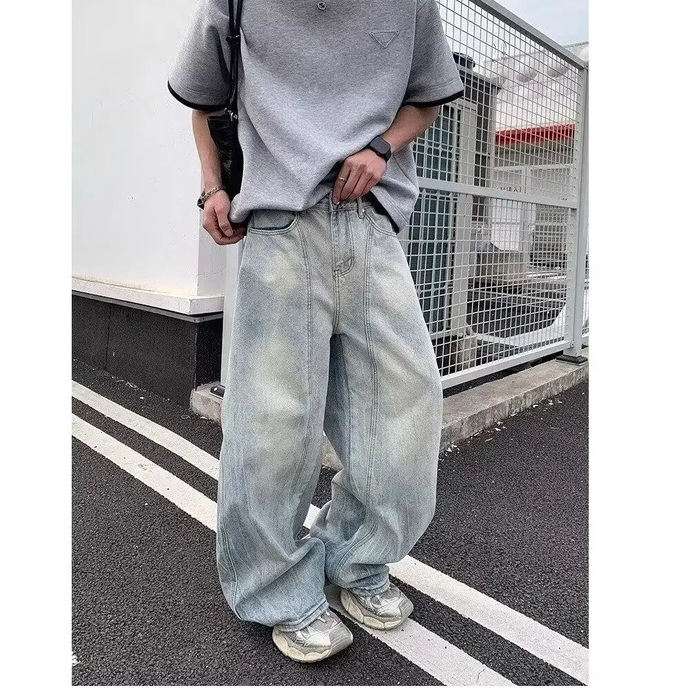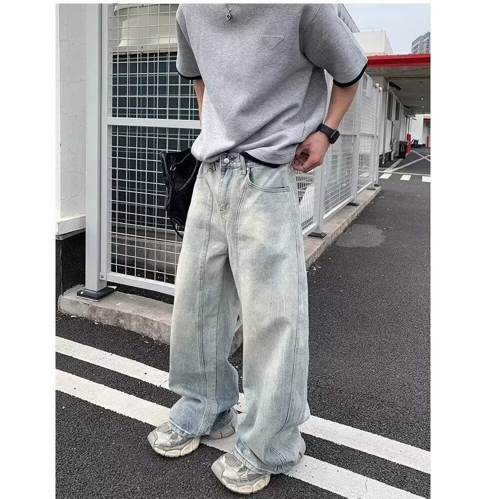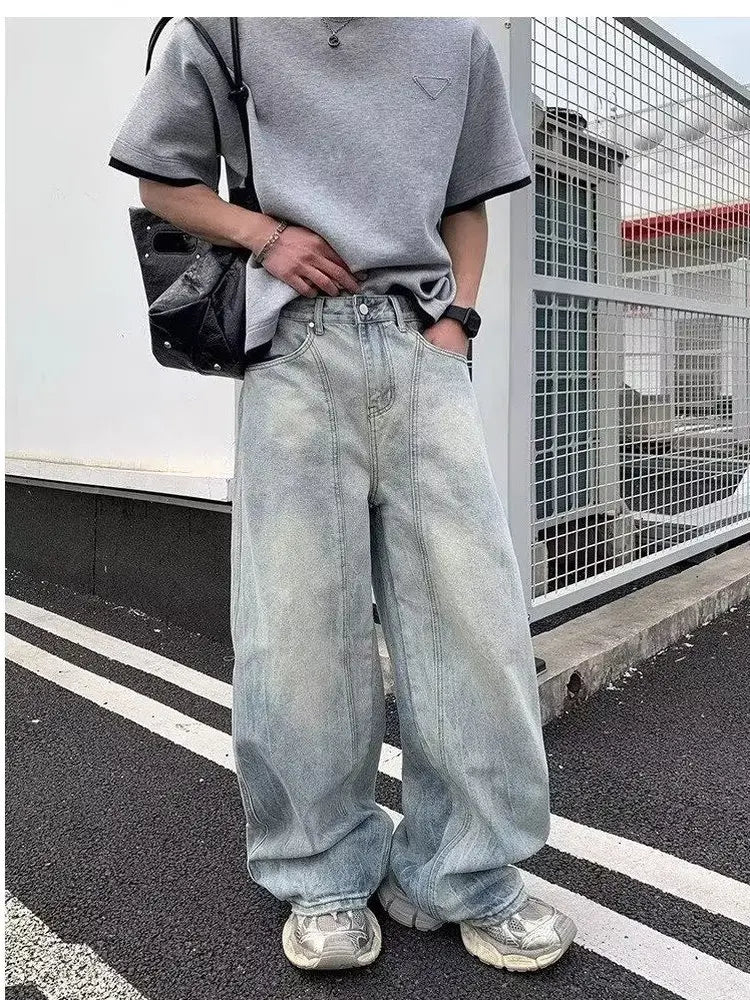 AIDASE - Retro Waed Wide Leg Knife Denim Jeans for Men Casual Straight Cut Trousers Summer Faion Loose Fit Teenager Jeans