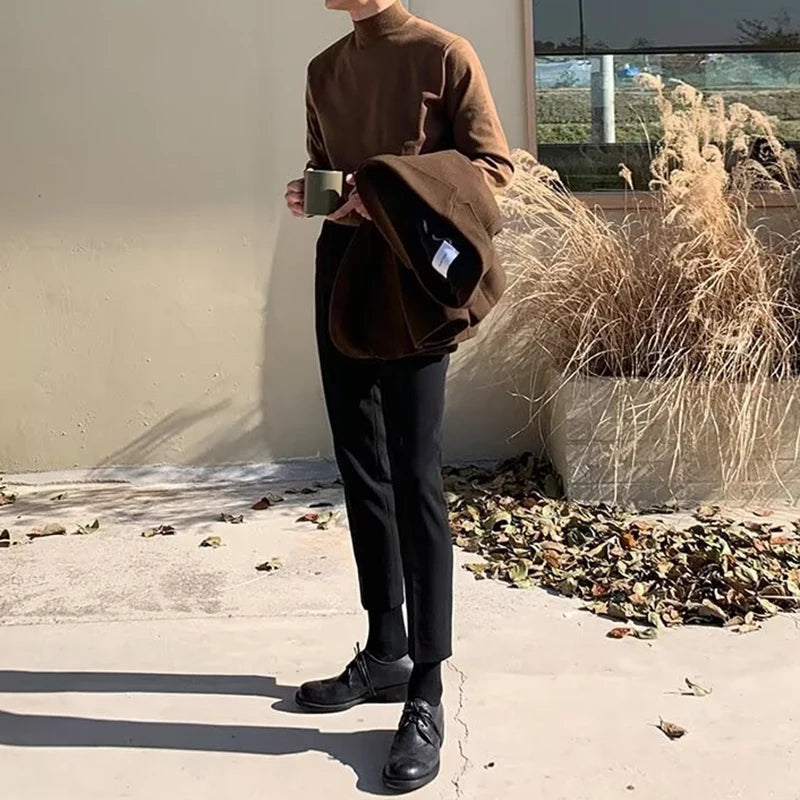 AIDASE - Spring Casual Long Sleeve Knit Jumper Tops Men Fashion Solid Color Basic Tees Autumn Vintage Mock Neck Men's Slim Fit Sweaters