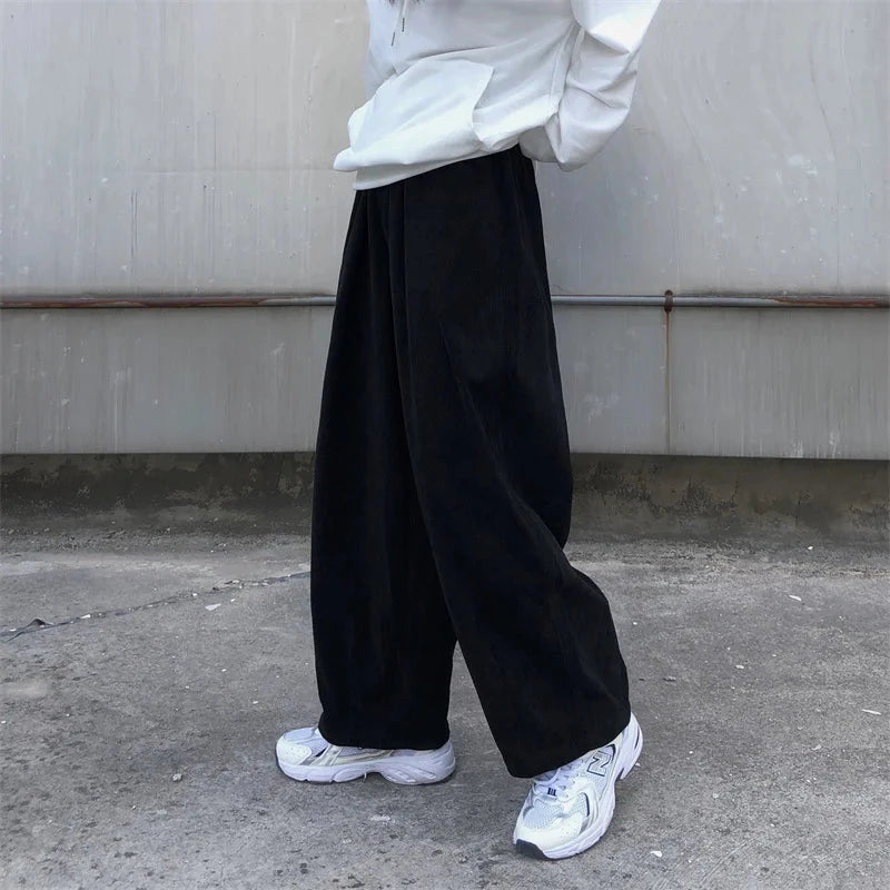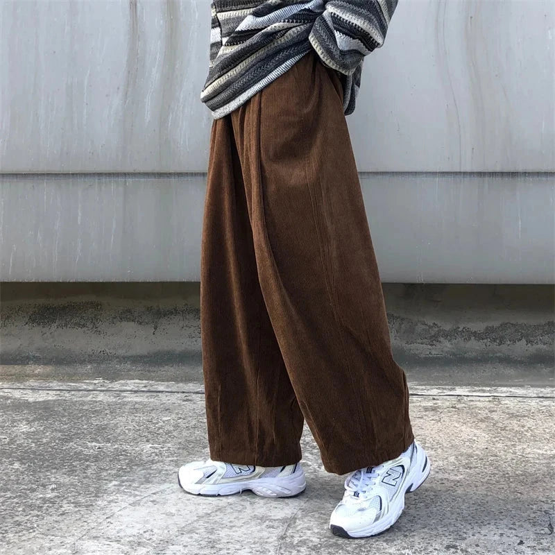AIDASE - Trendy Japanese Sle Men's Corduroy Pants Autumn Spring Loose Fit Sports Casual Lantern Pants Long Straight Tube Trousers