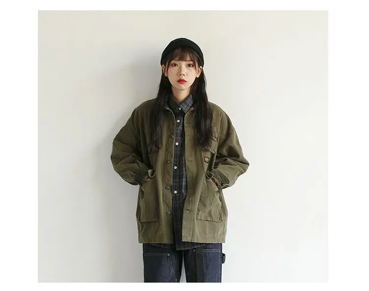 Japanese Retro Tooling Jacket Women's Autumn Neutral BF Style Loose Short Jacket Stitching All-match Shirt Trendy Men's Shirt