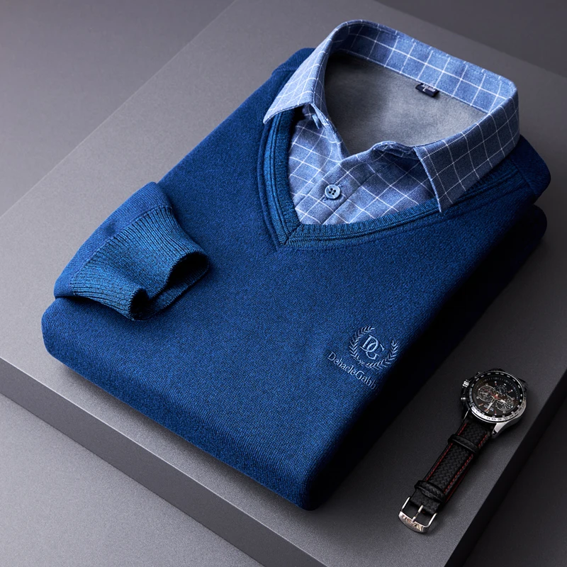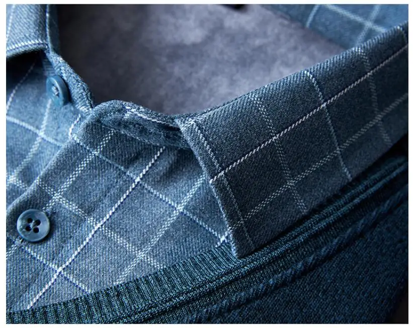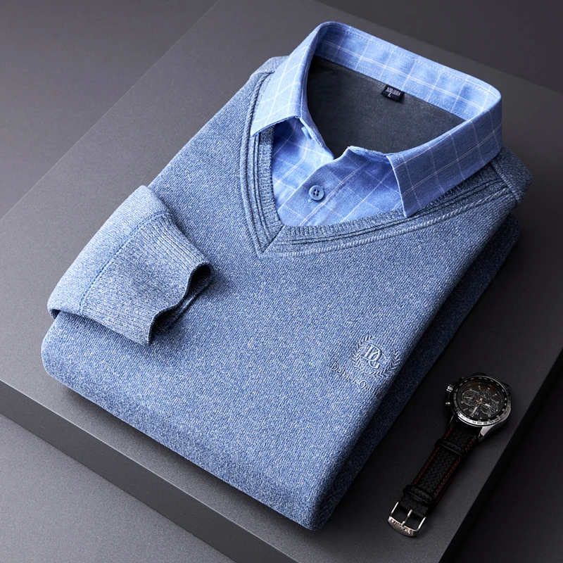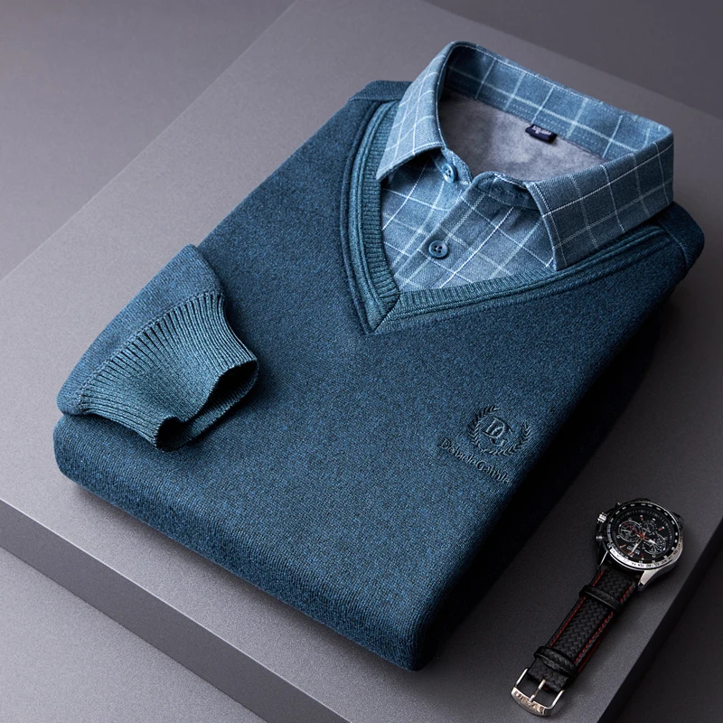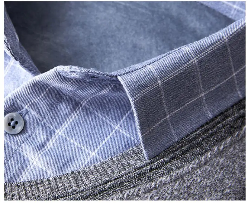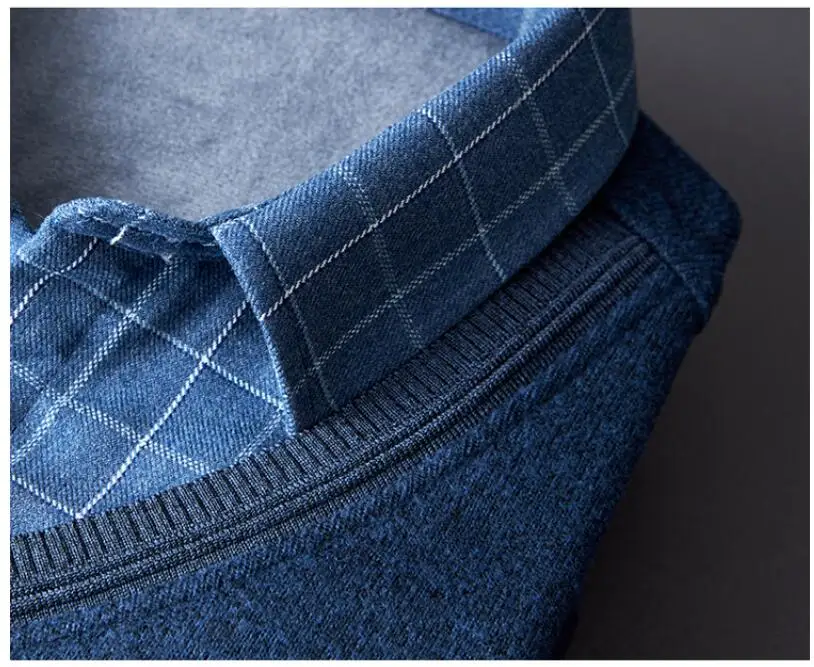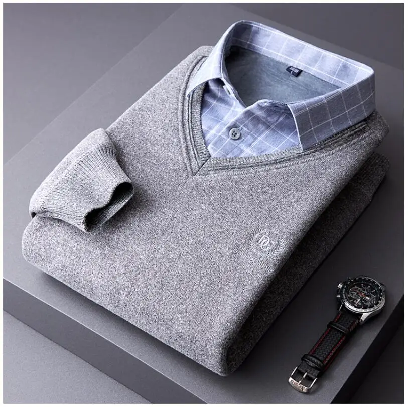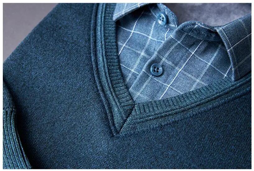 Men Sweaters Shirts Pullovers Fake Two-Pieces Shirts Knitwear Fleece Warm Sweaters Male Business Casual Pullovers Sweaters 4XL