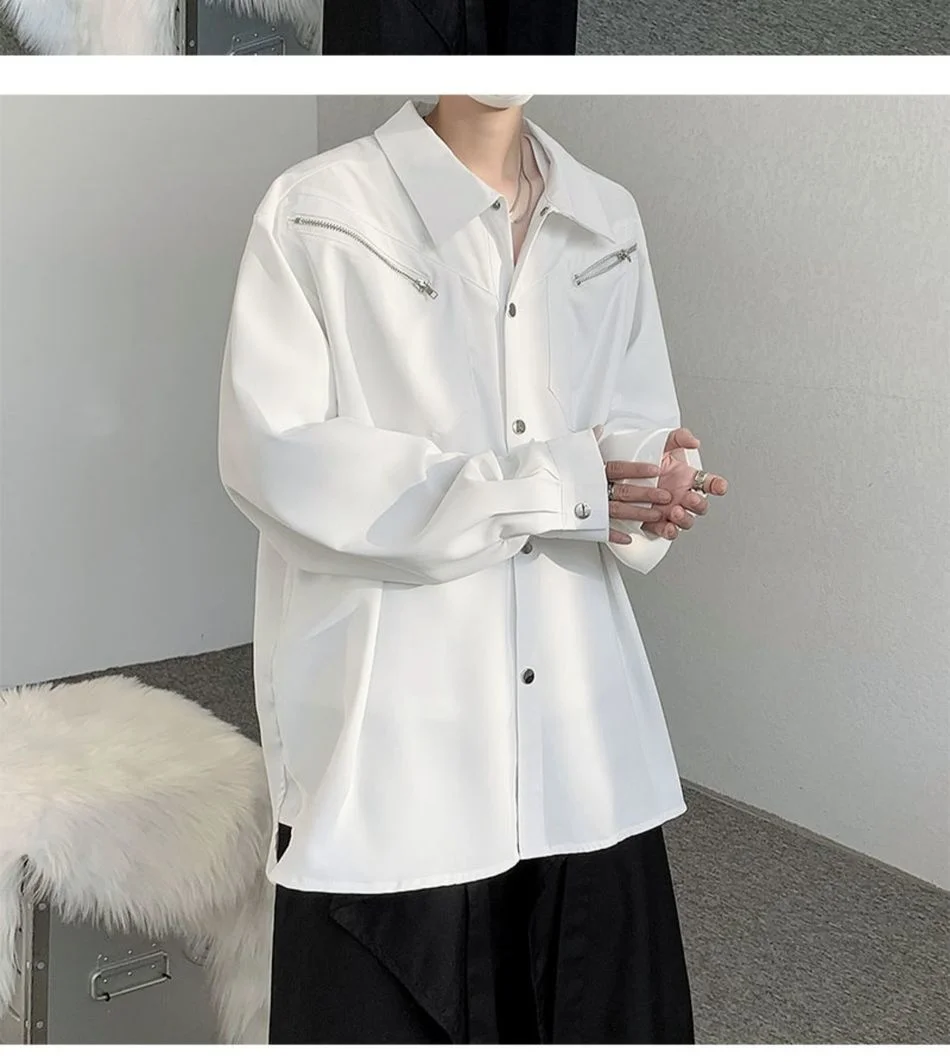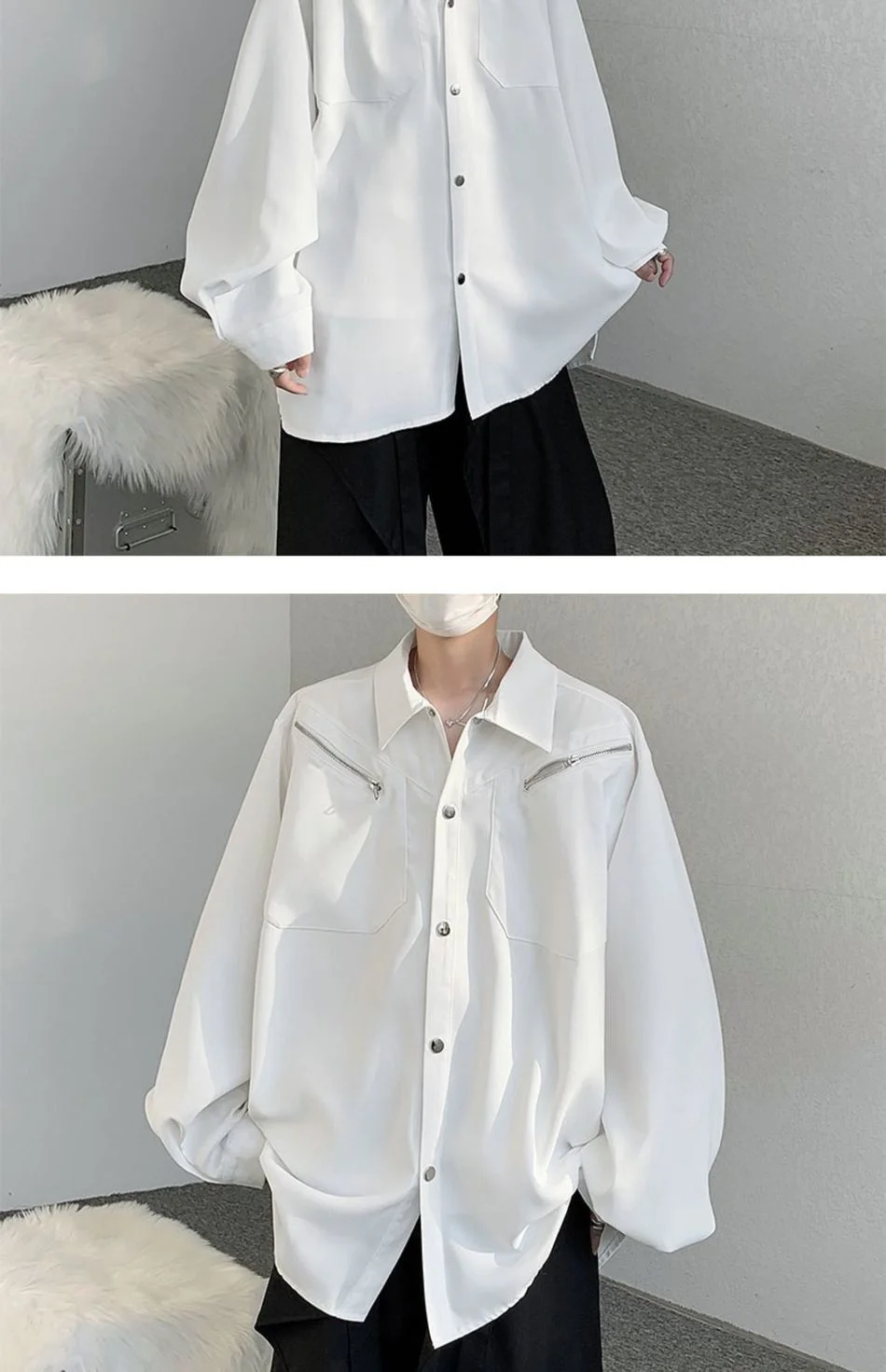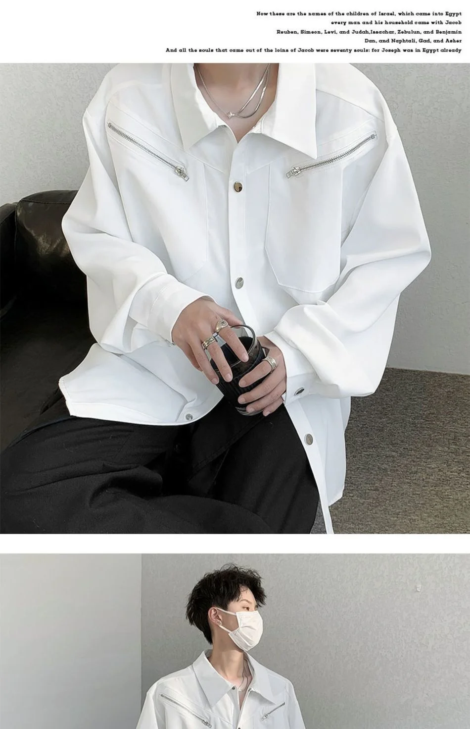 New Ice Silk Smooth Sunscreen Metal Zipper Shirts Mens American High Street Y2k Raspy Handsome Loose Slim Casual Tops Shirt