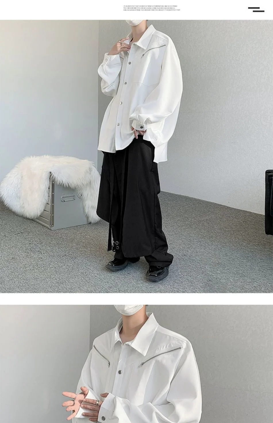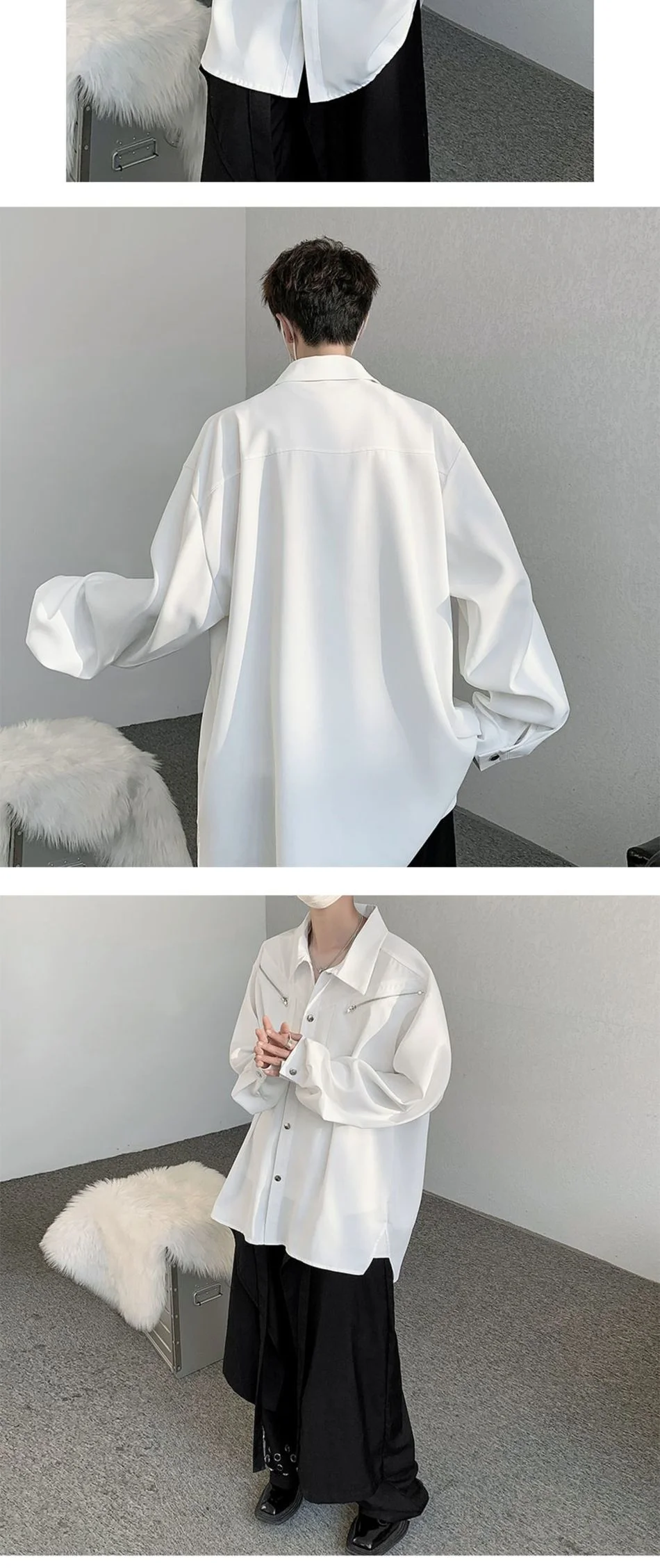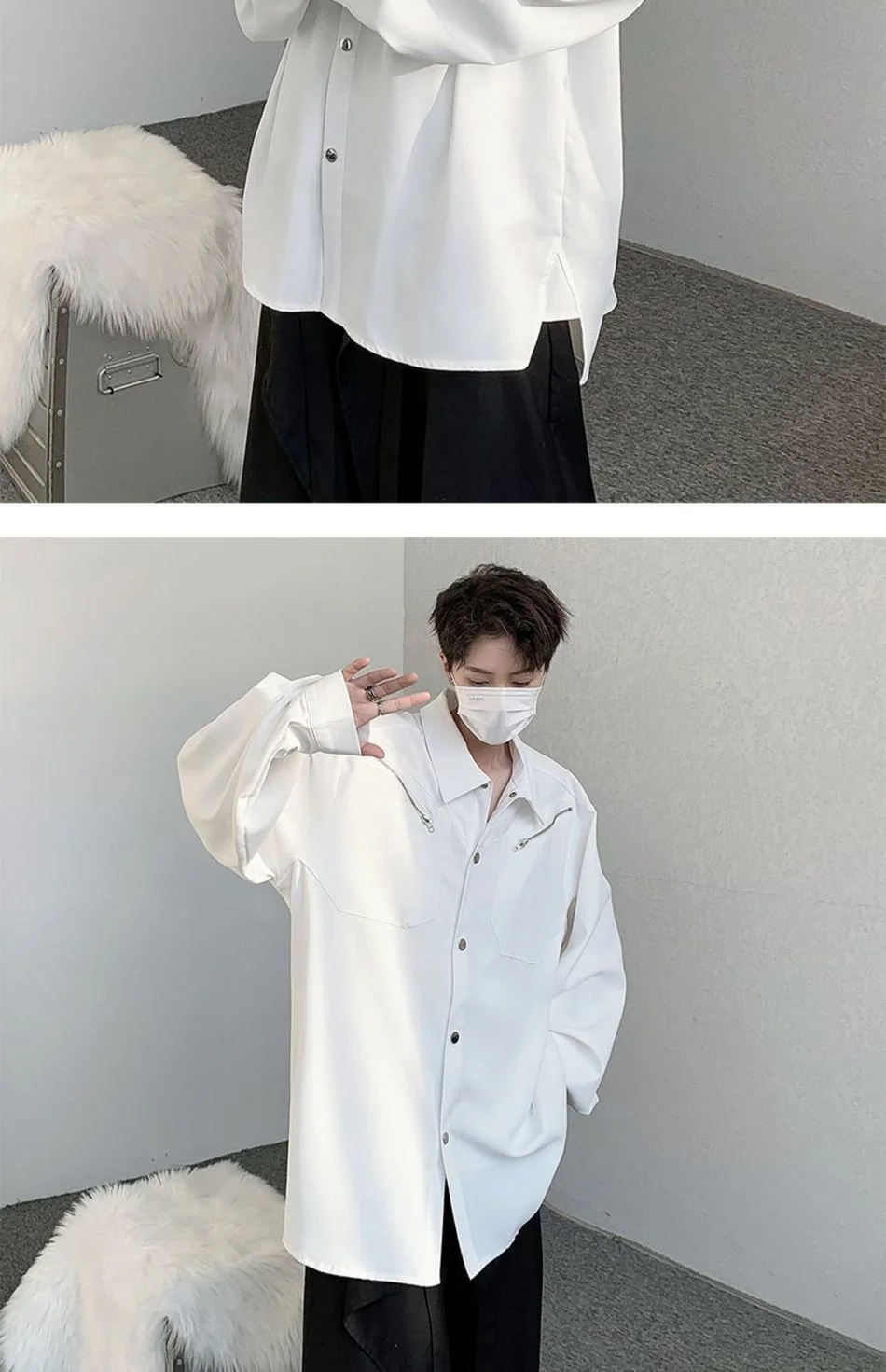New Ice Silk Smooth Sunscreen Metal Zipper Shirts Mens American High Street Y2k Raspy Handsome Loose Slim Casual Tops Shirt