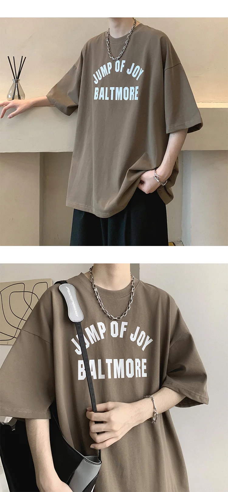 New Short Sleeve T-shirt Man Trend Letter Graphic Printed Tops Crew Neck Oversized Cotton Tees Male T Shirt